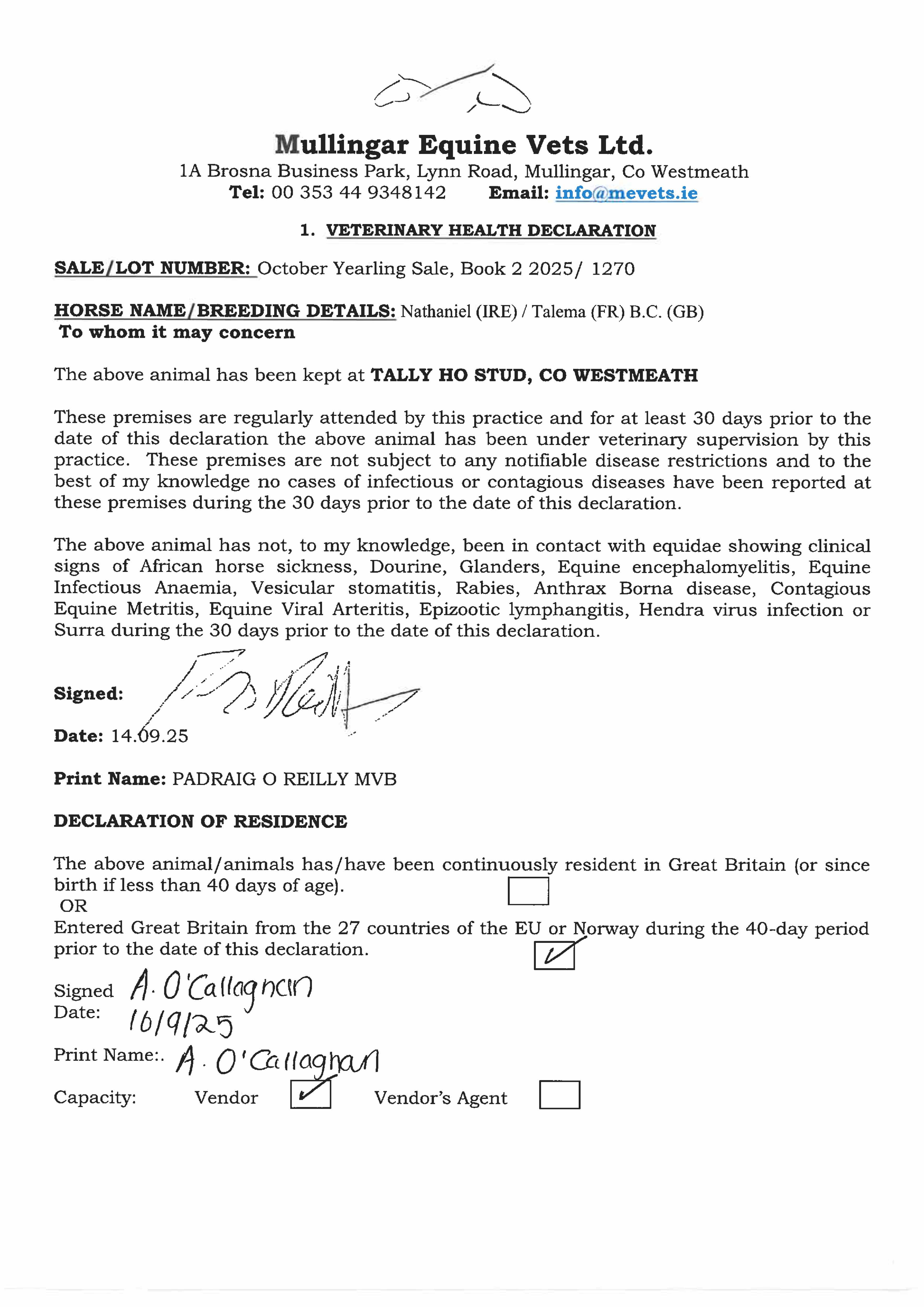 Consignor: Tally-Ho Stud, Ireland