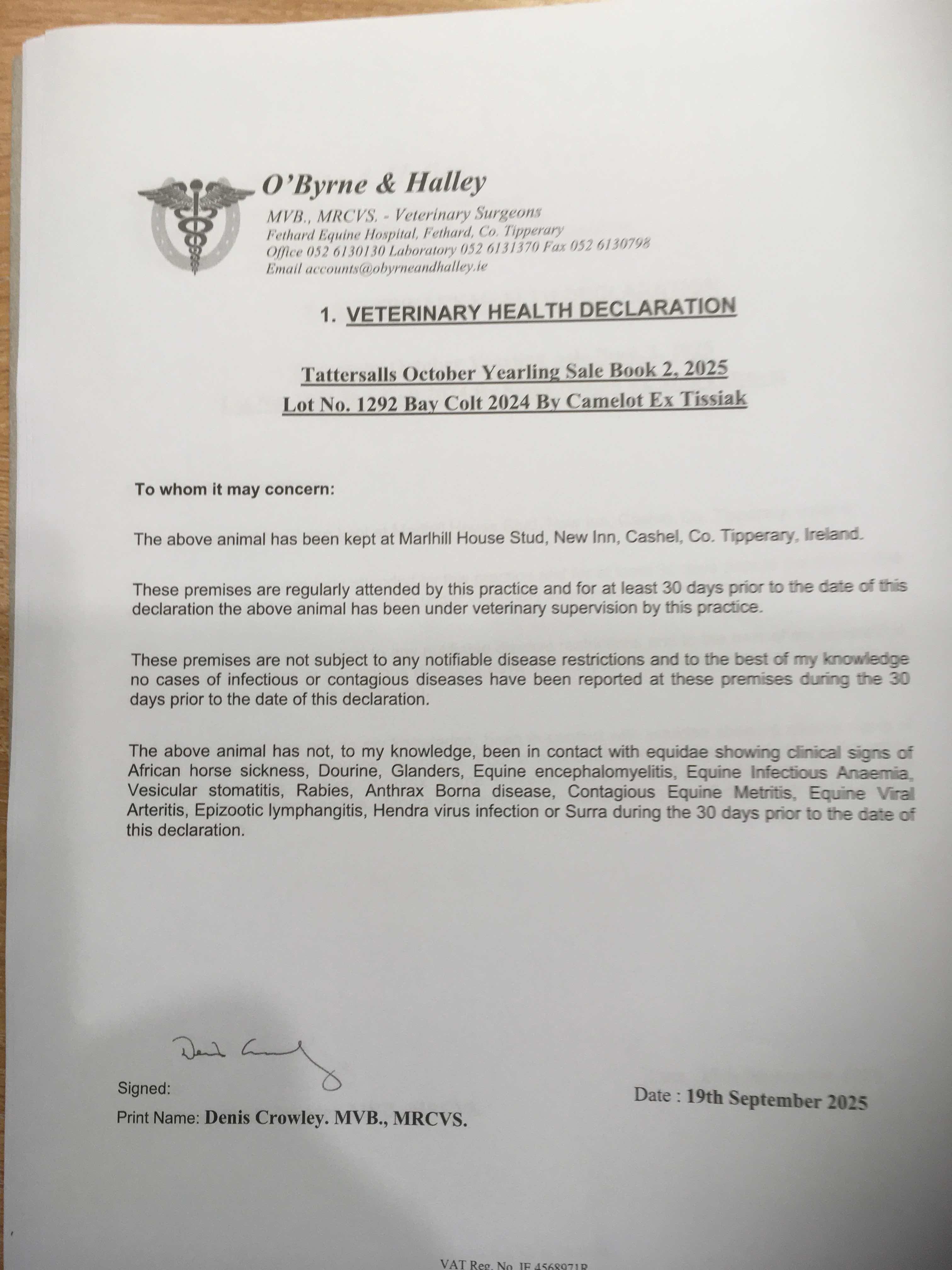 Consignor: Marlhill House Stud, Ireland