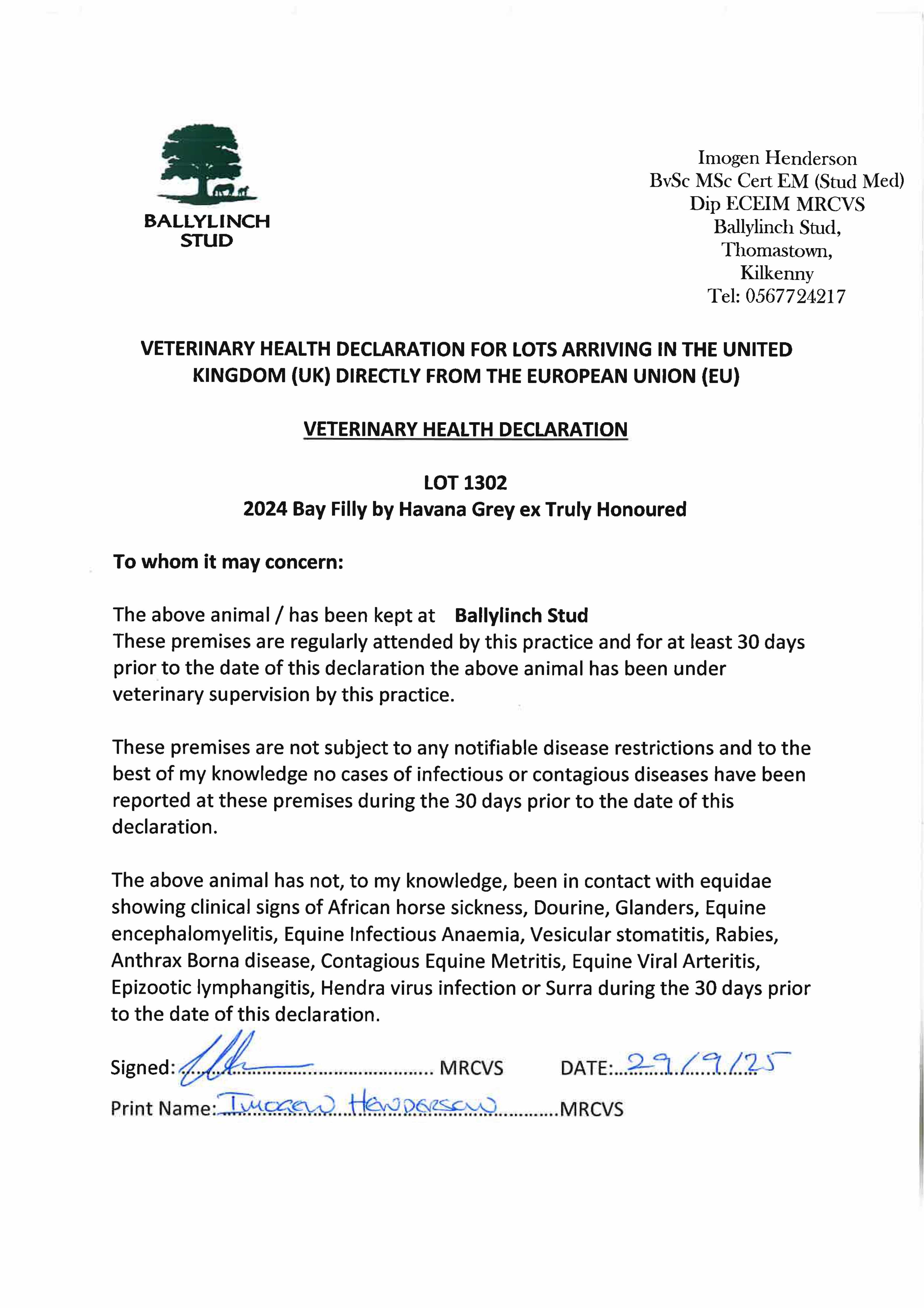 Consignor: Ballylinch Stud, Ireland