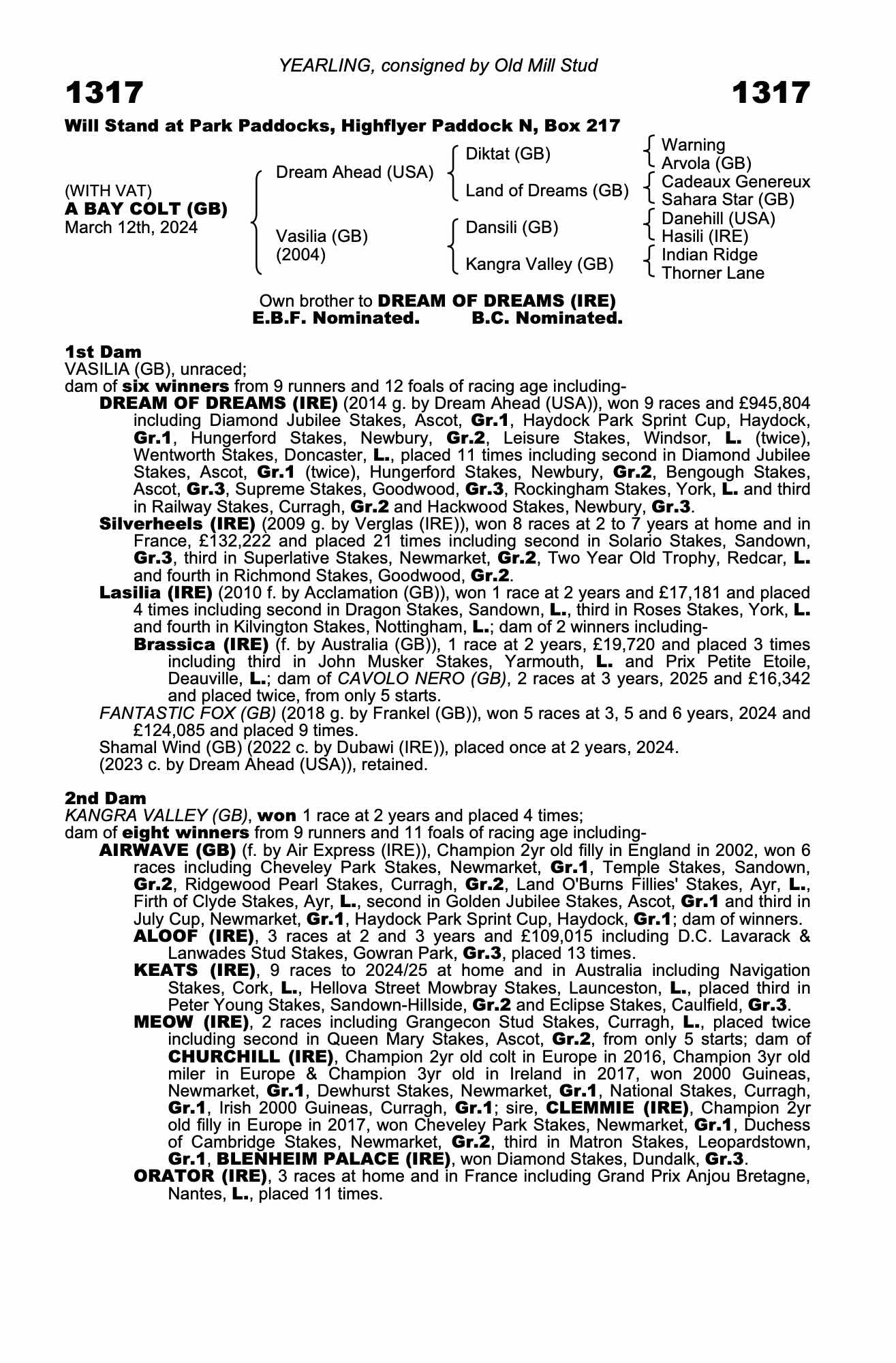 Consignor: Old Mill Stud