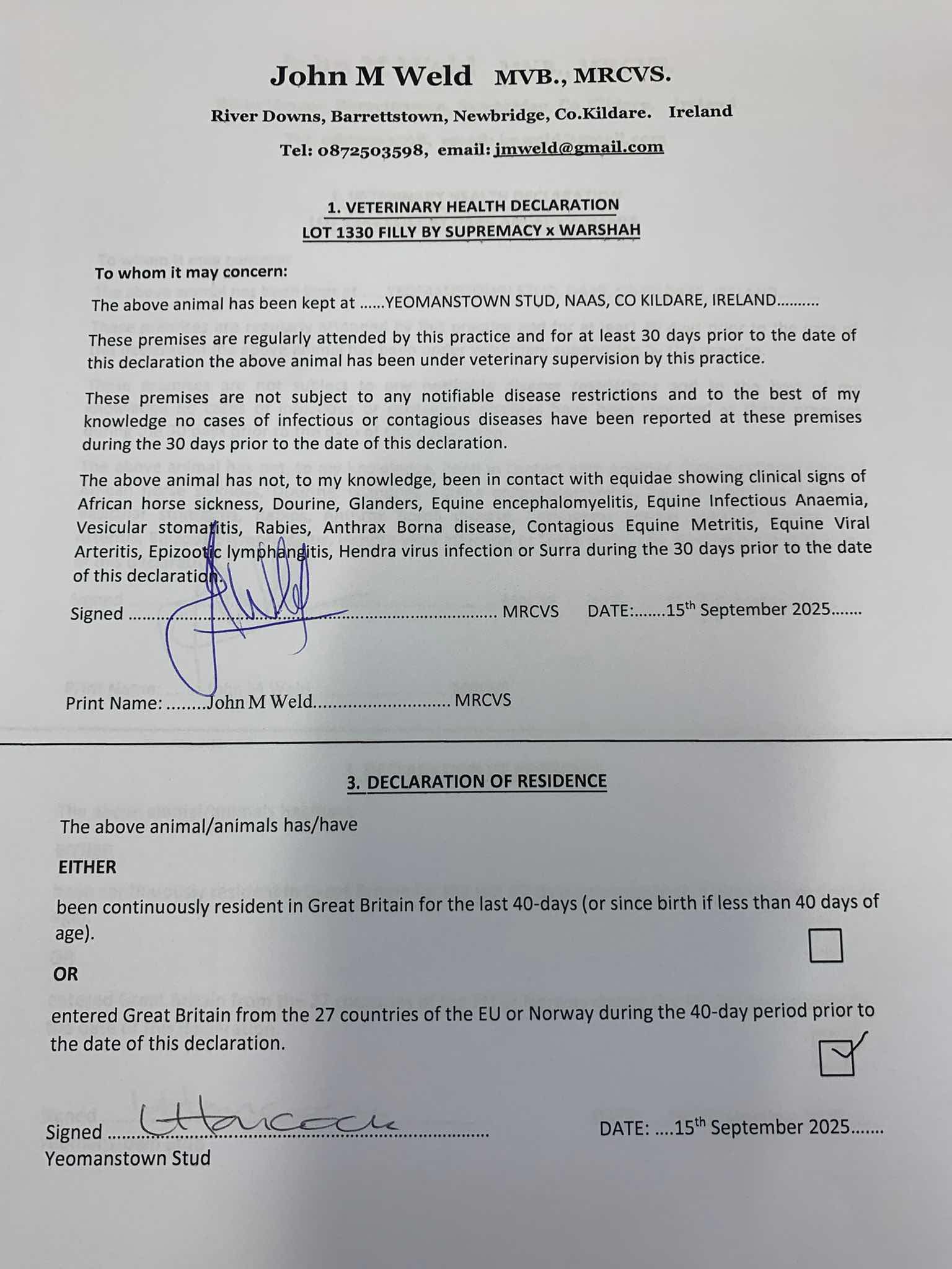 Consignor: Yeomanstown Stud, Ireland