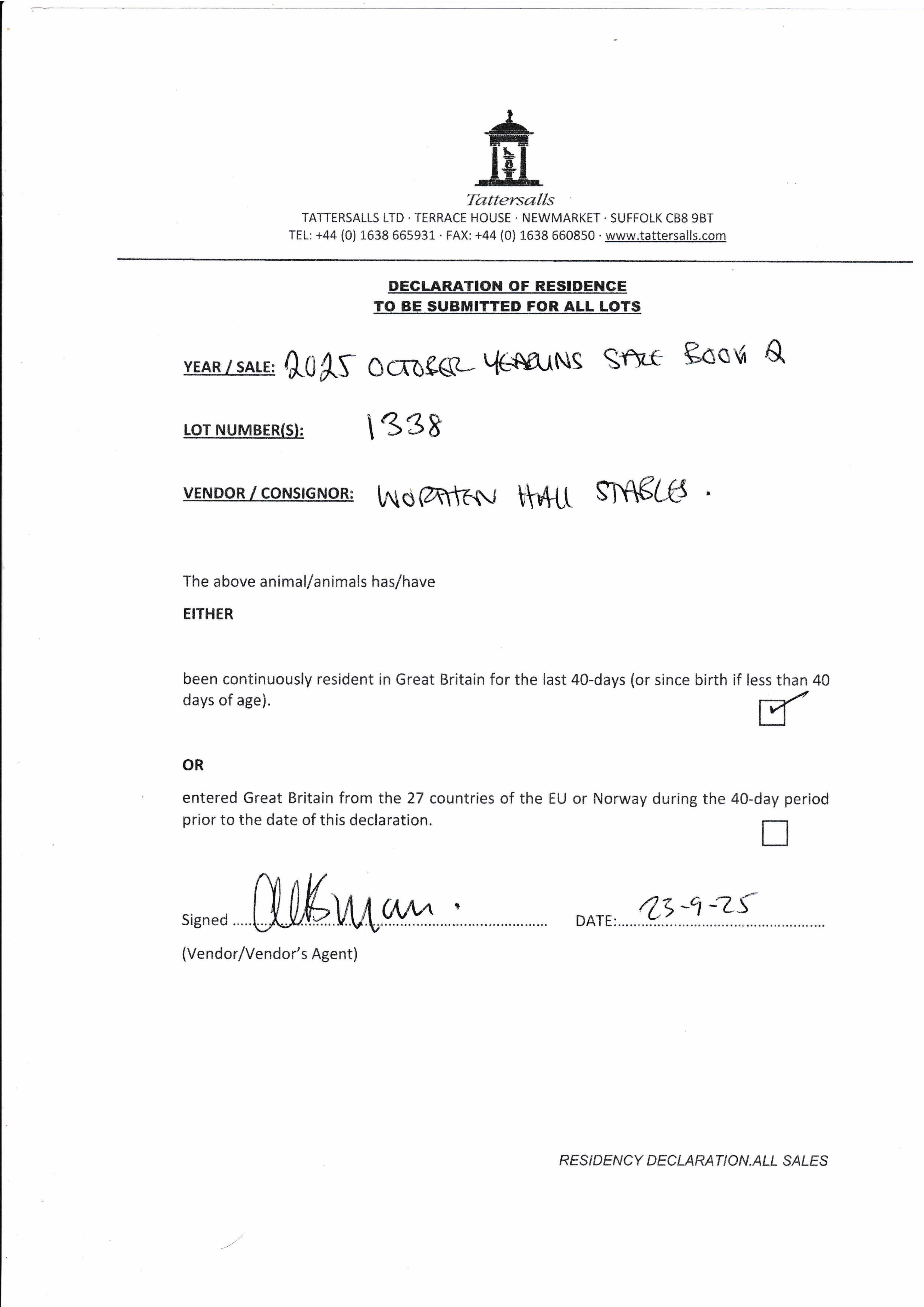 Autumn Horses In Training Sale 2025 lot 766 Zabeel Road (IRE) (G. by Invincible Spirit (IRE)), The Old Malthouse Stables (J. Osborne)=>Yousef Abushaibah 7,000 gns