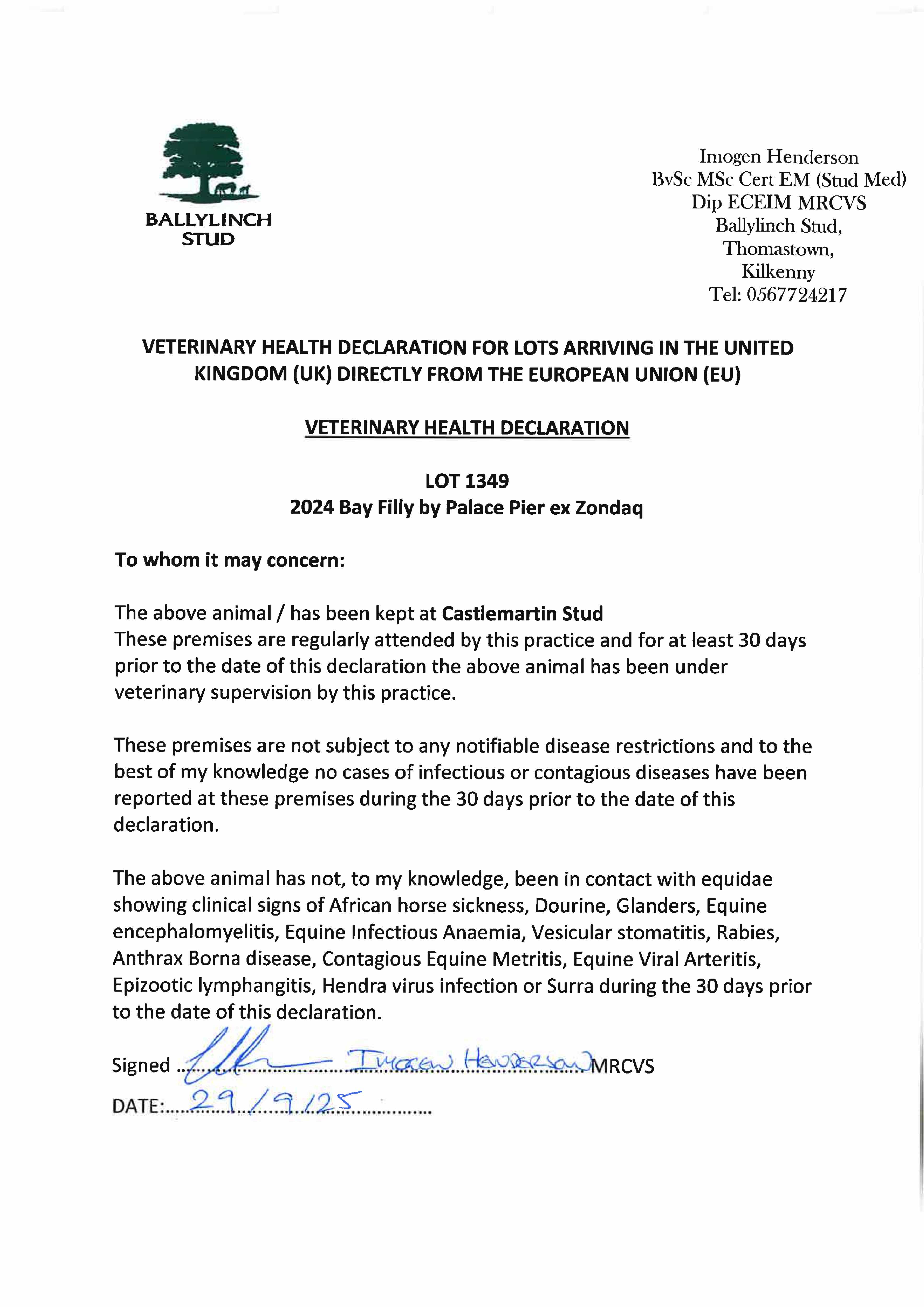 October Yearling Sale, Book 1 2024 lot 55 F. by Too Darn Hot (GB) 2023, Ballylinch Stud, Ireland=>Vendor 180,000 gns