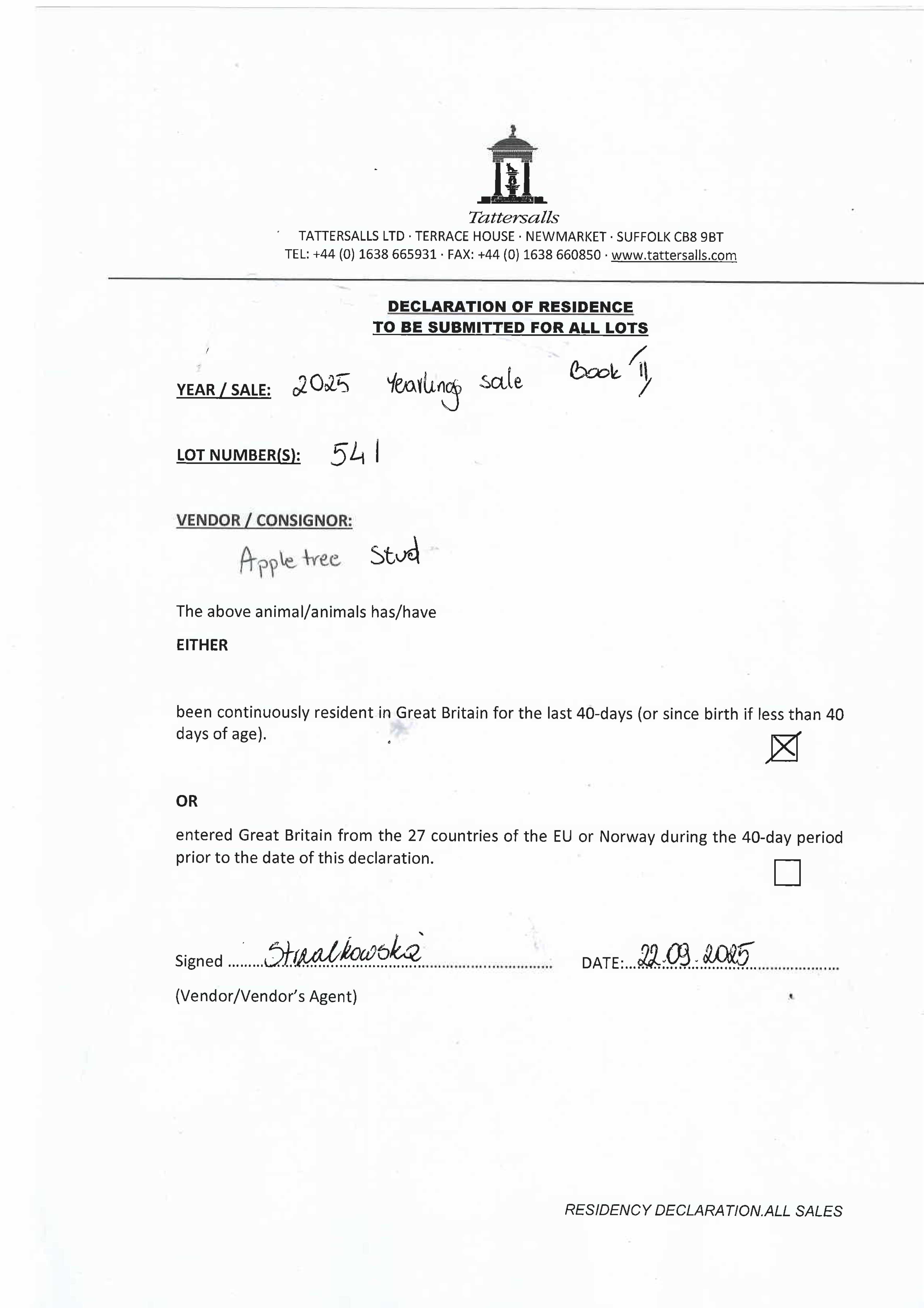 December Mare Sale 2025 lot 1490 Absolute Star (GB) (F. by Dark Angel (IRE)), Appletree Stud=>Meadowlands Stud (Co Down) 18,000 gns