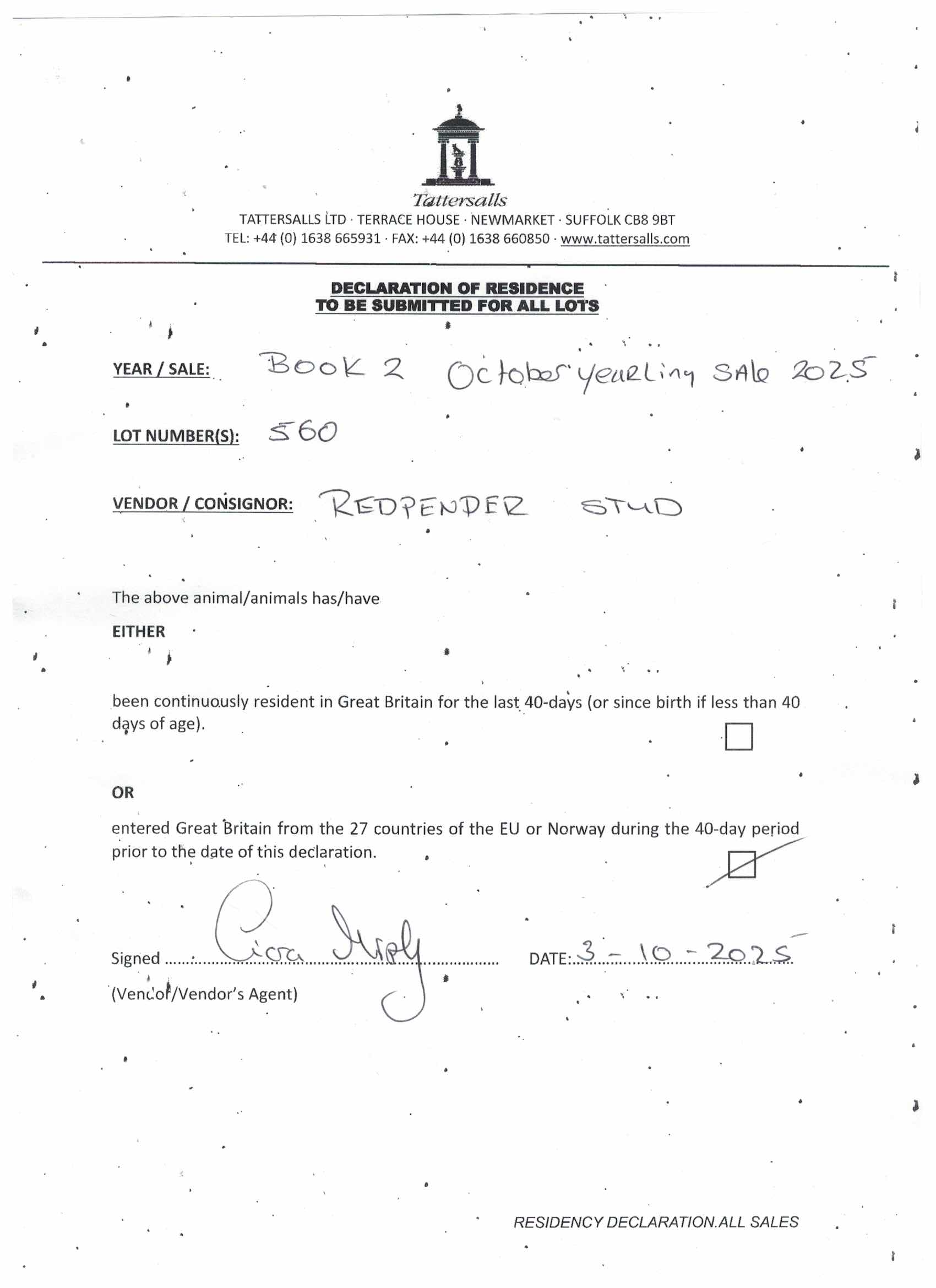 Consignor: Redpender Stud, Ireland