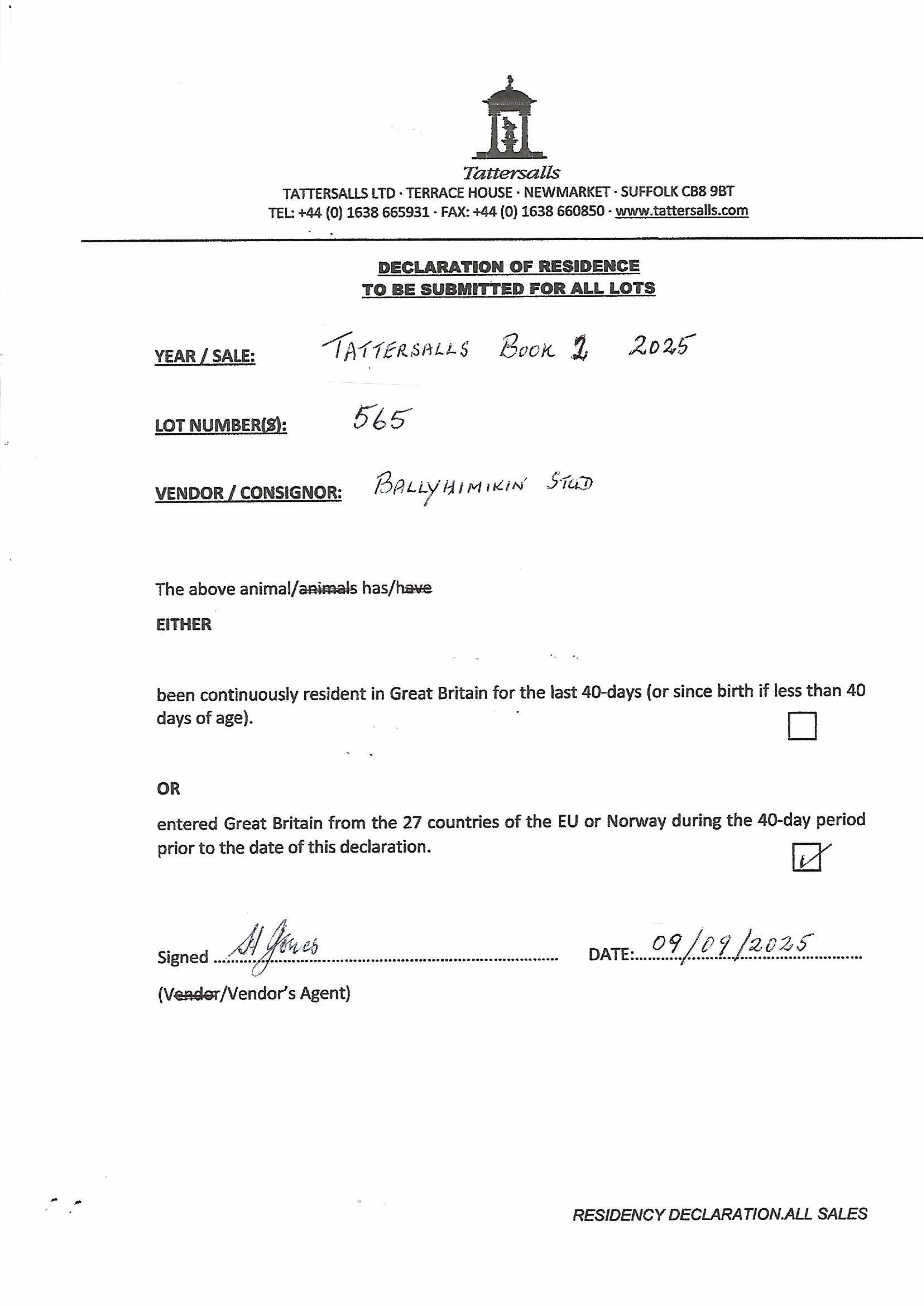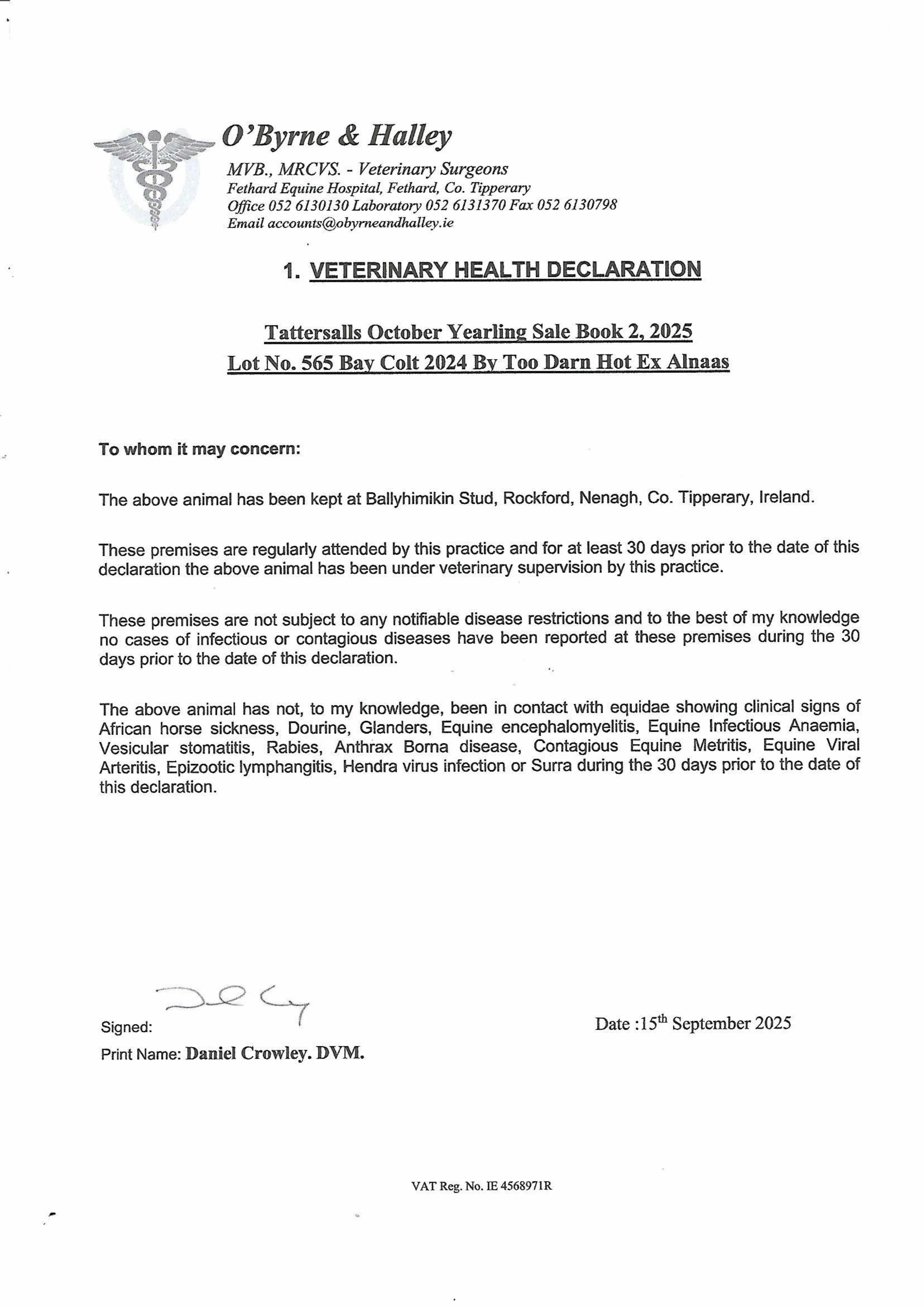 Consignor: Ballyhimikin Stud, Ireland