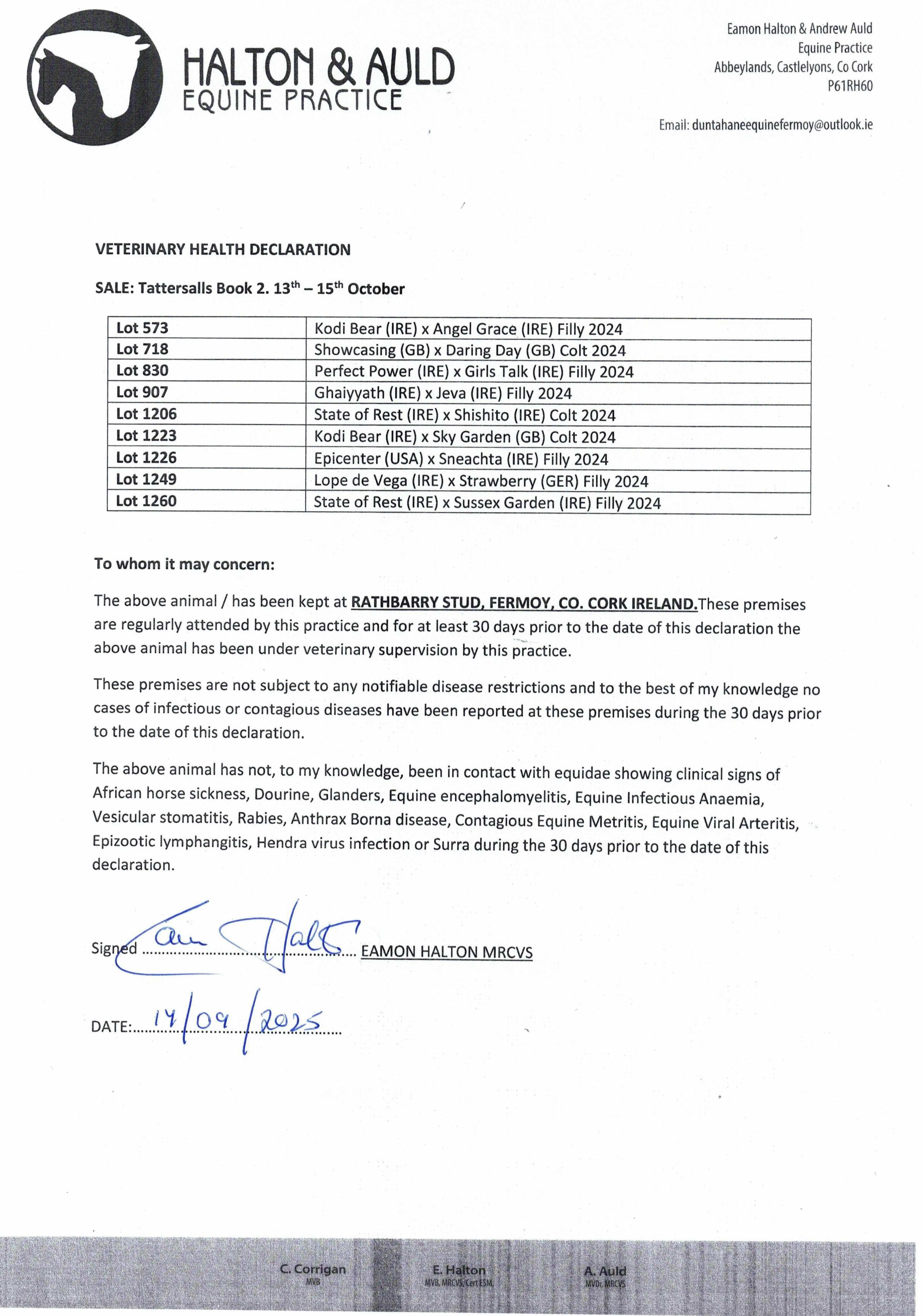 Consignor: Rathbarry Stud, Ireland (Agent)