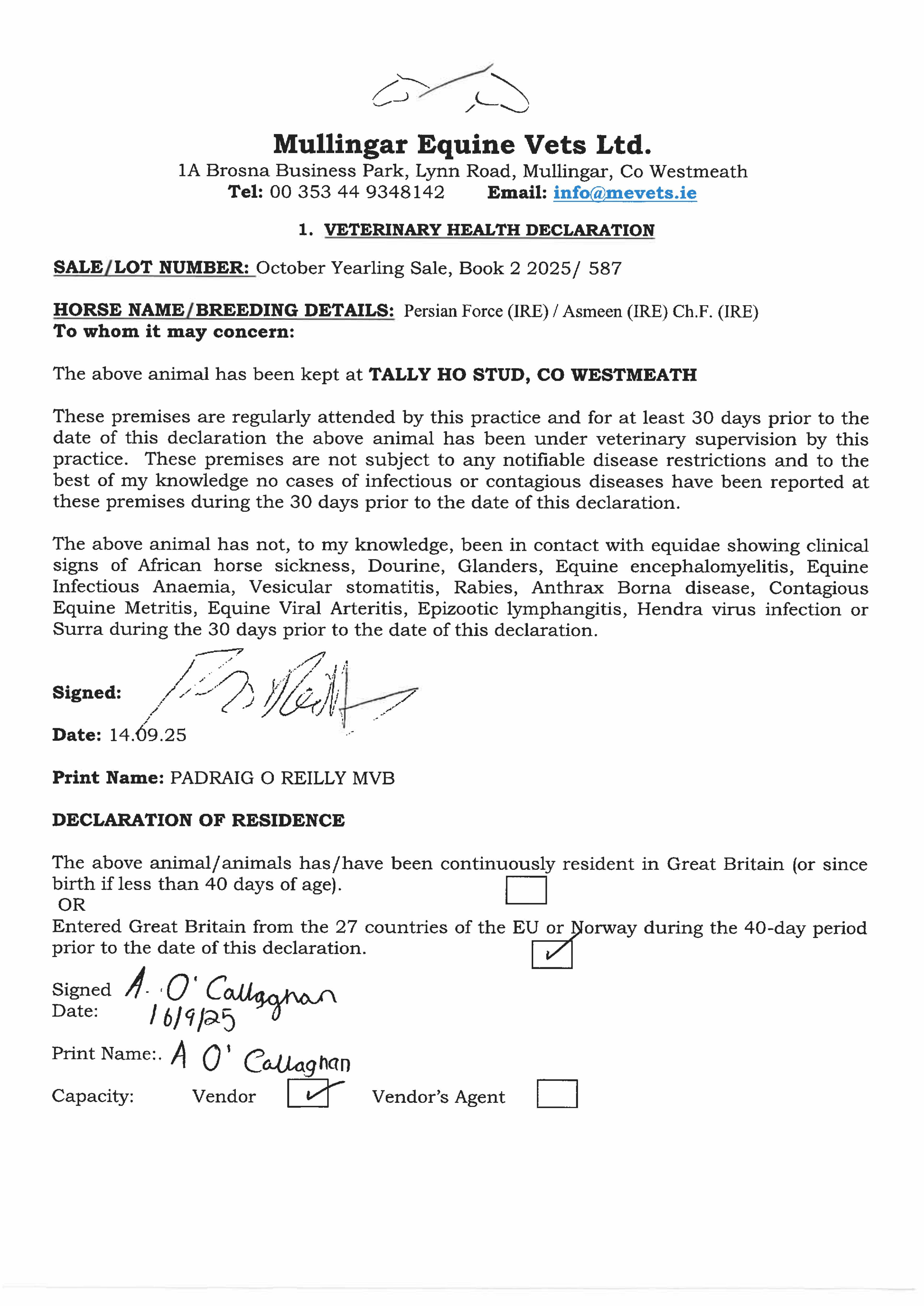 Consignor: Tally-Ho Stud, Ireland