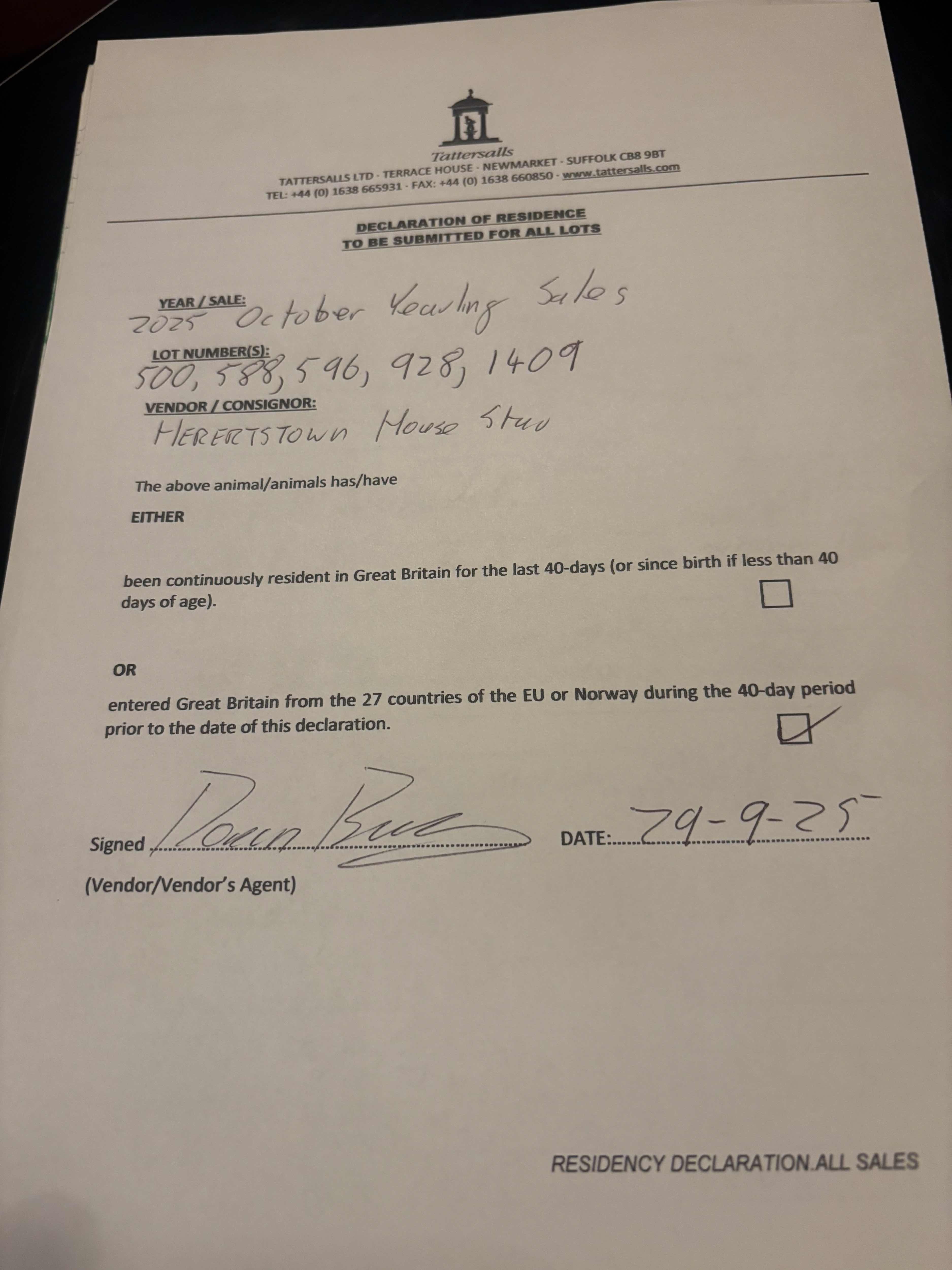 Consignor: Herbertstown House Stud (Co. Kildare), Ireland
