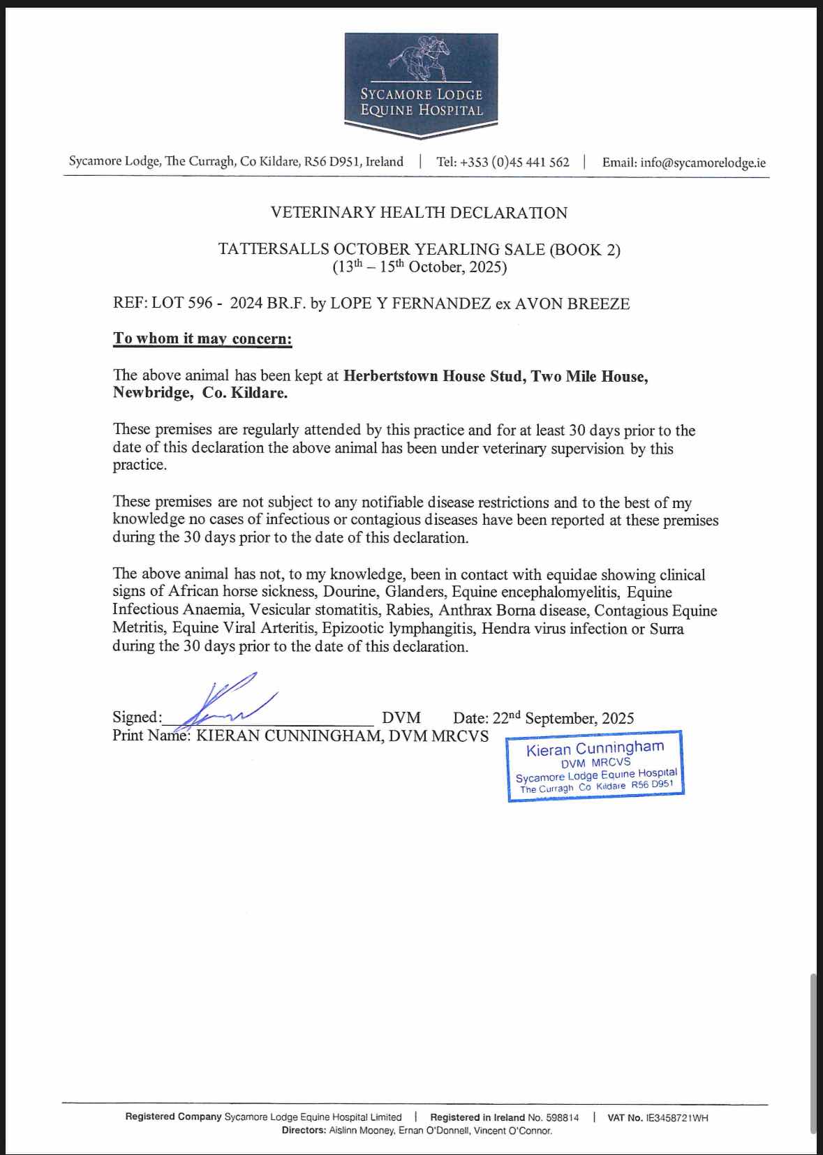Consignor: Herbertstown House Stud (Co. Kildare), Ireland