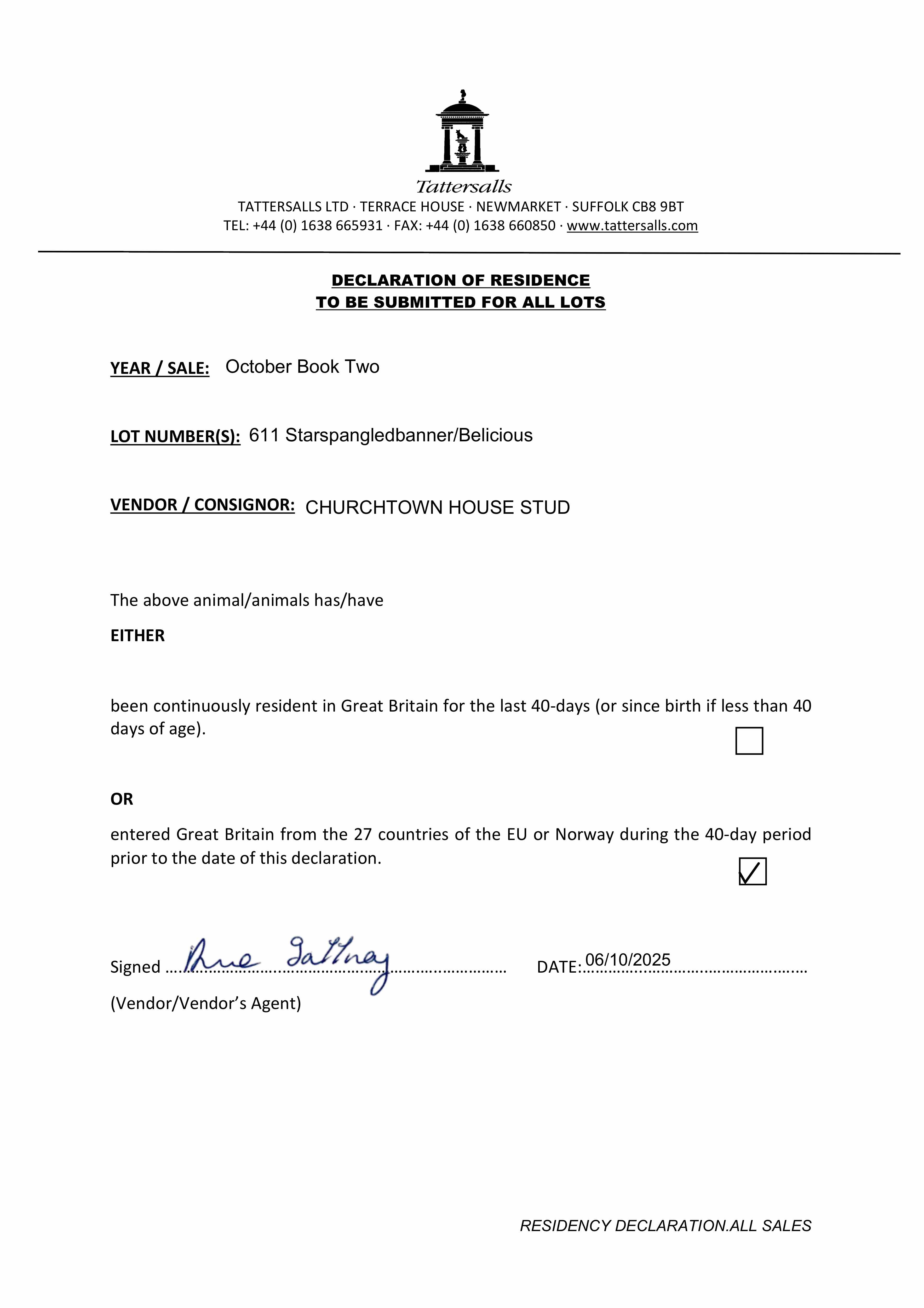 Consignor: Churchtown House Stud, Ireland
