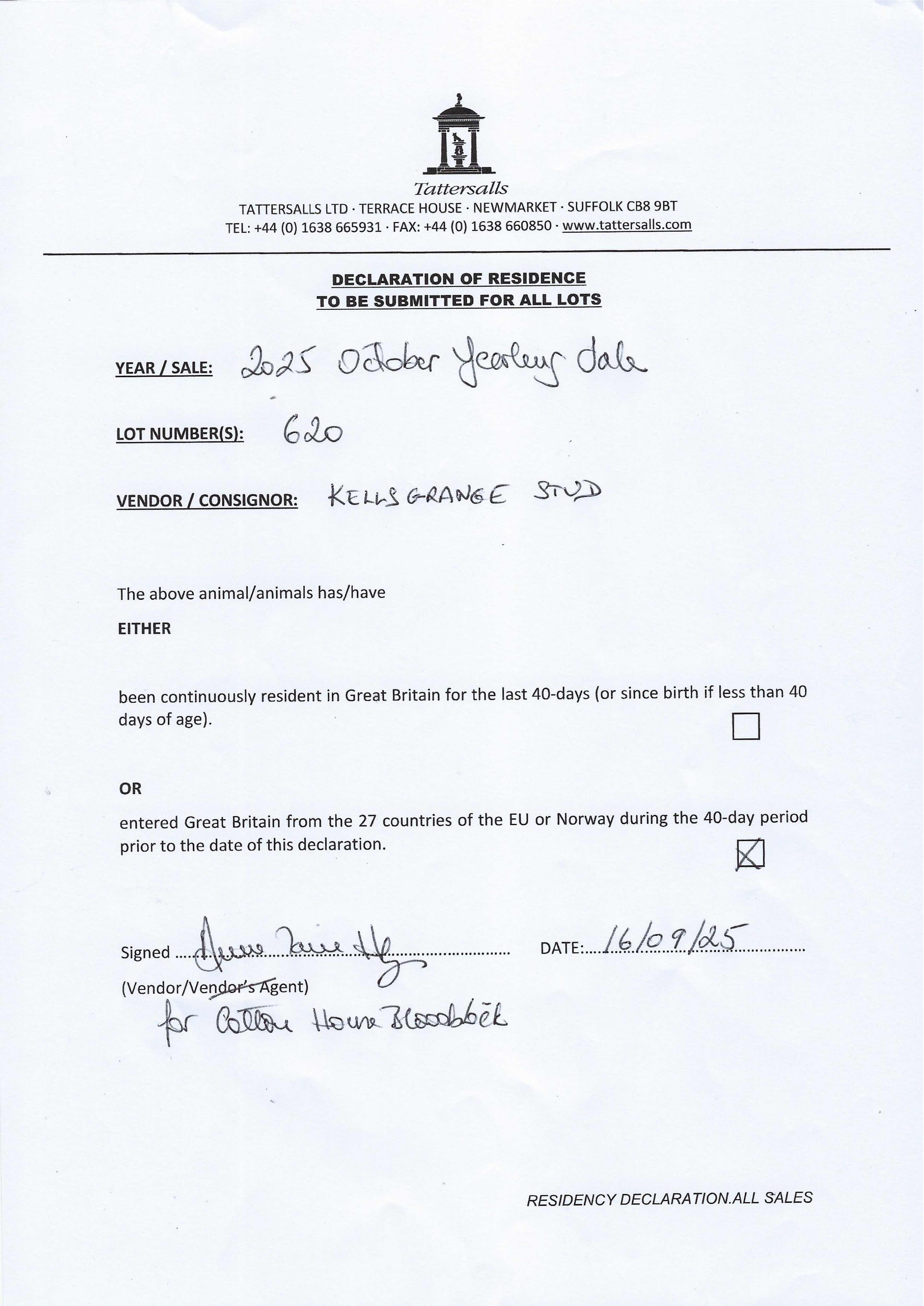 Consignor: Kellsgrange Stud, Ireland