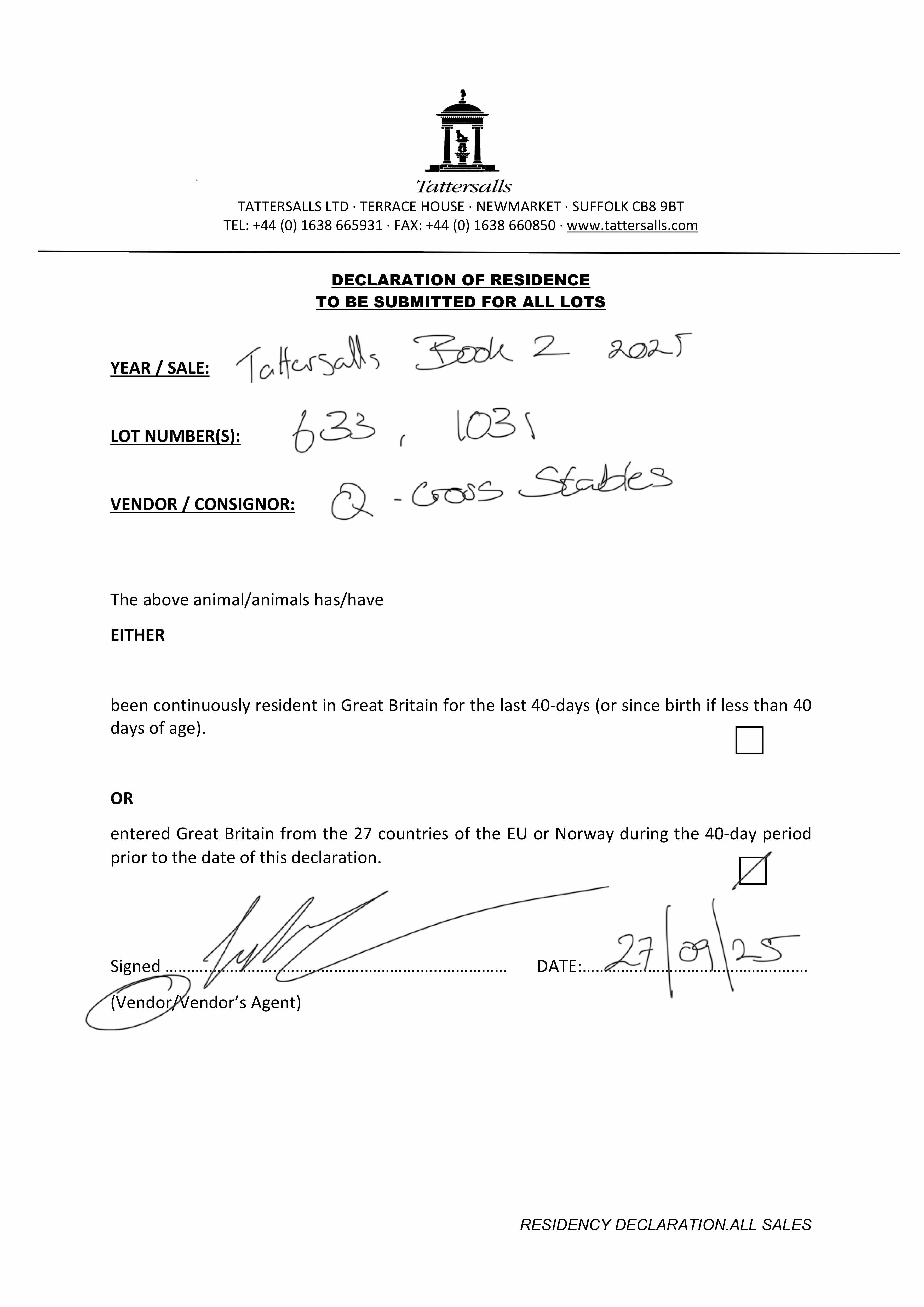 December Foal Sale 2025 lot 963 F. by Mehmas (IRE) 2025, Mickley Stud Ltd.=>Tally-Ho Stud 80,000 gns