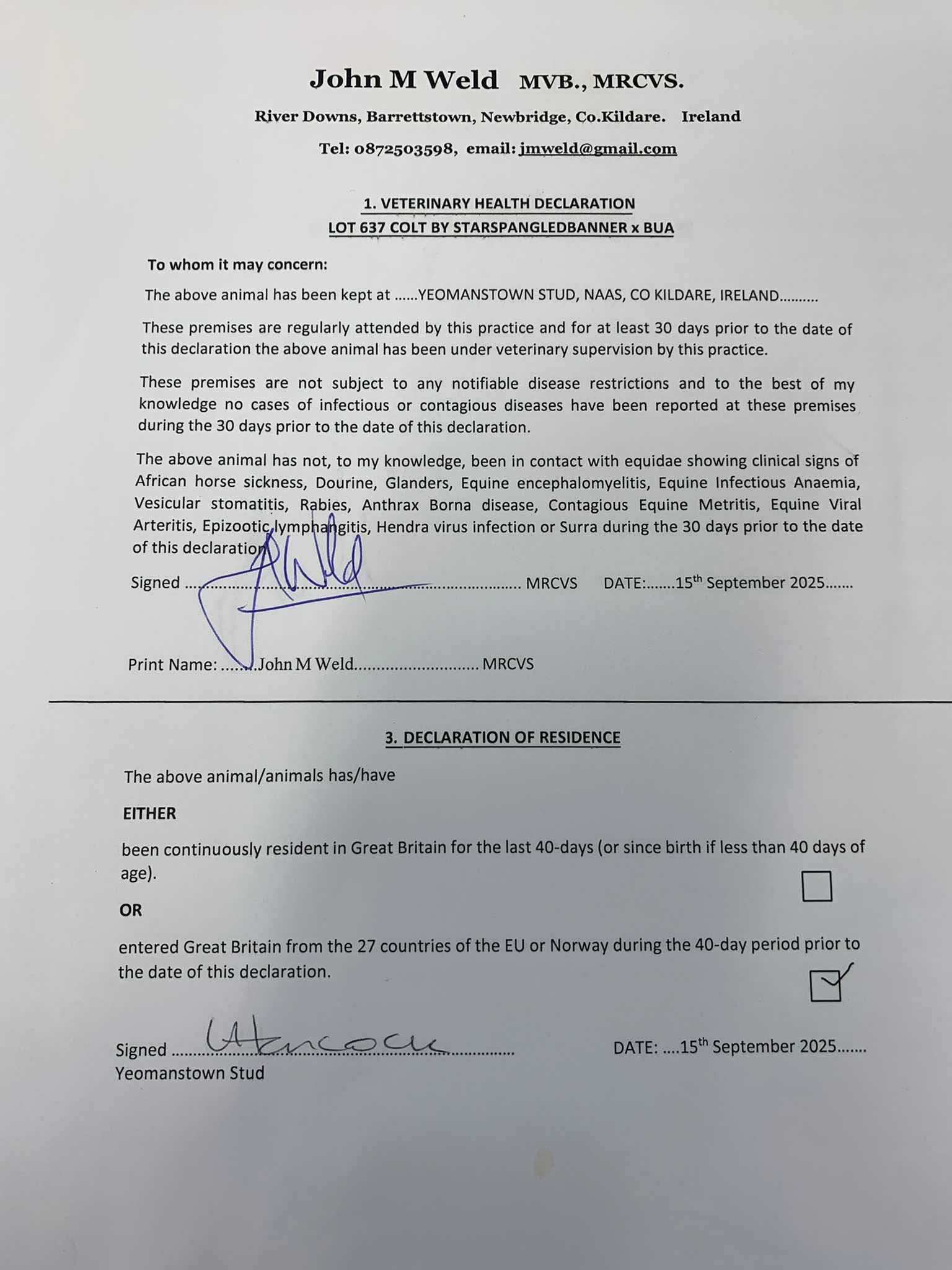 Yeomanstown Stud, Ireland