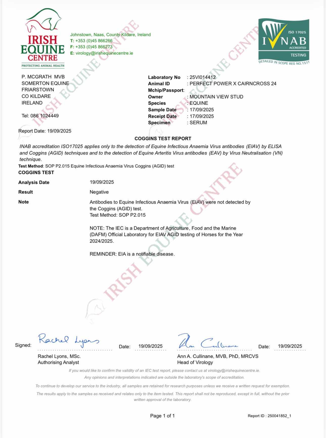 Consignor: Mountain View Stud, Ireland