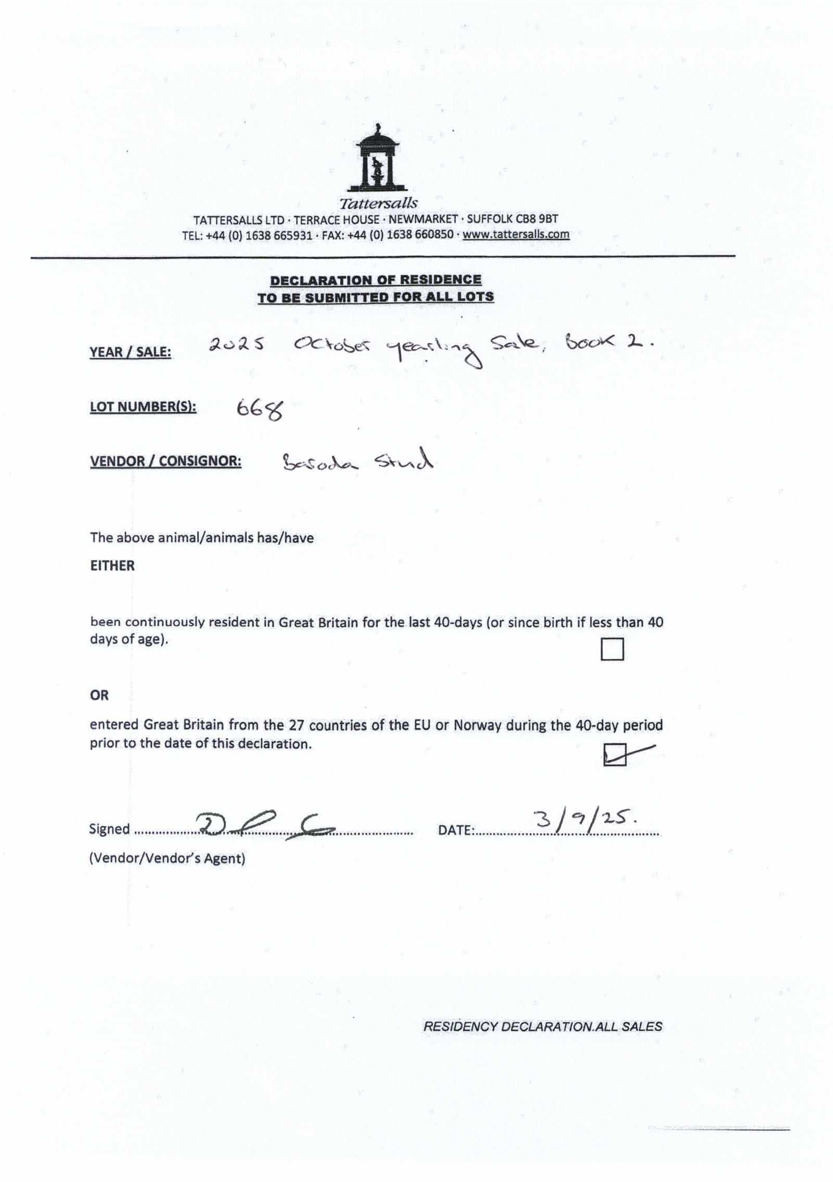 Consignor: Baroda Stud, Ireland