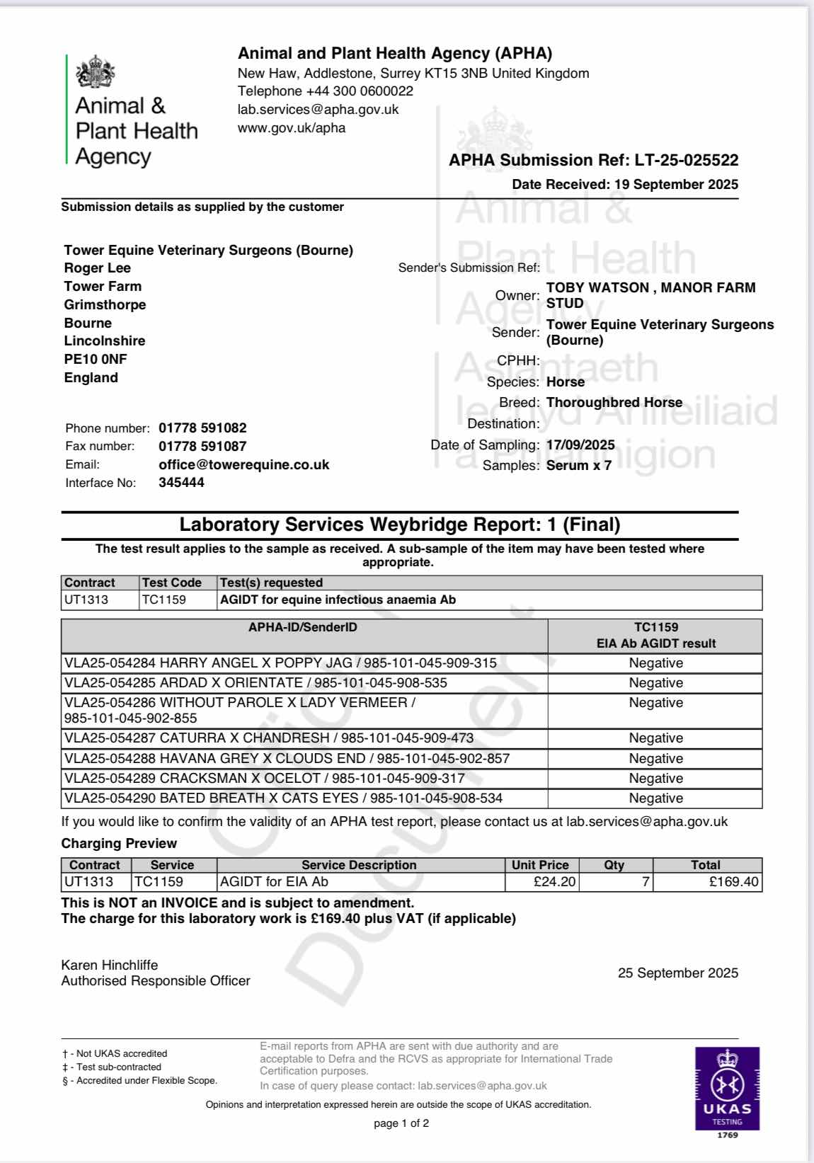 Contact: Toby Watson ✆ 07918125352 ✉ toby@manorfarmstud.com