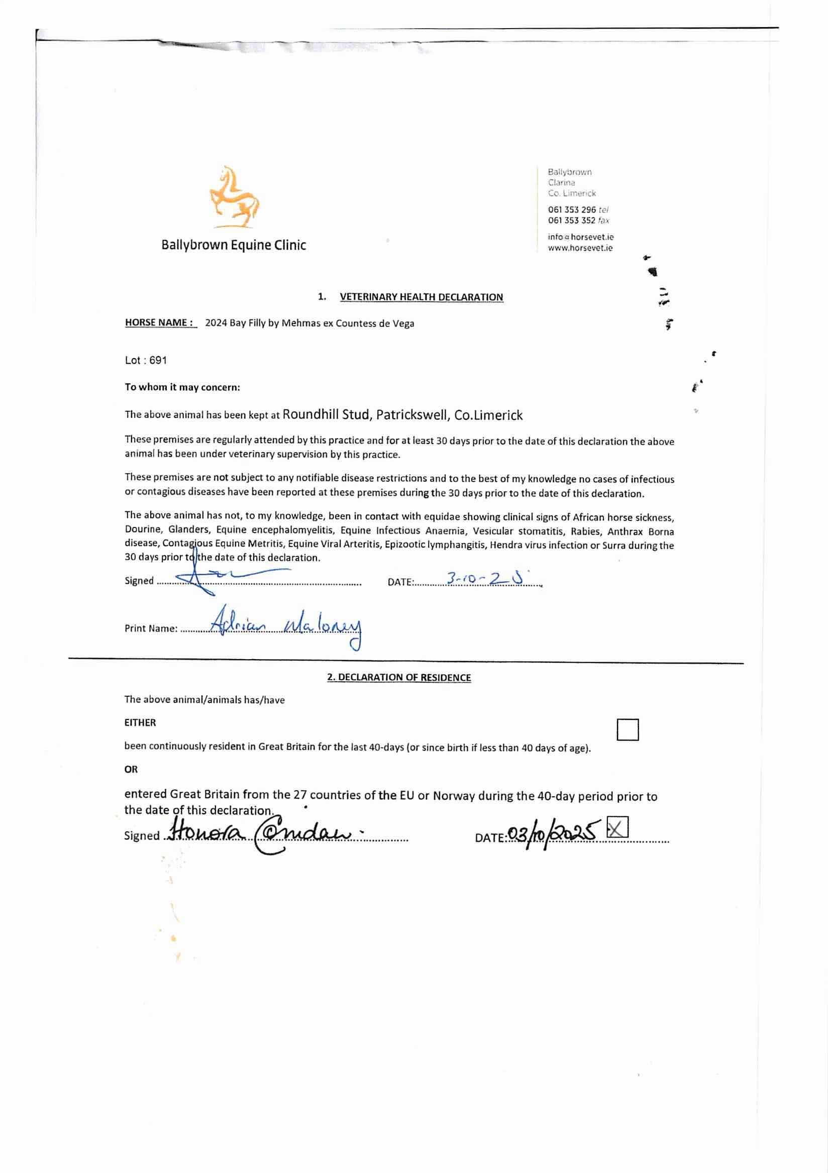 Consignor: Round Hill Stud, Ireland