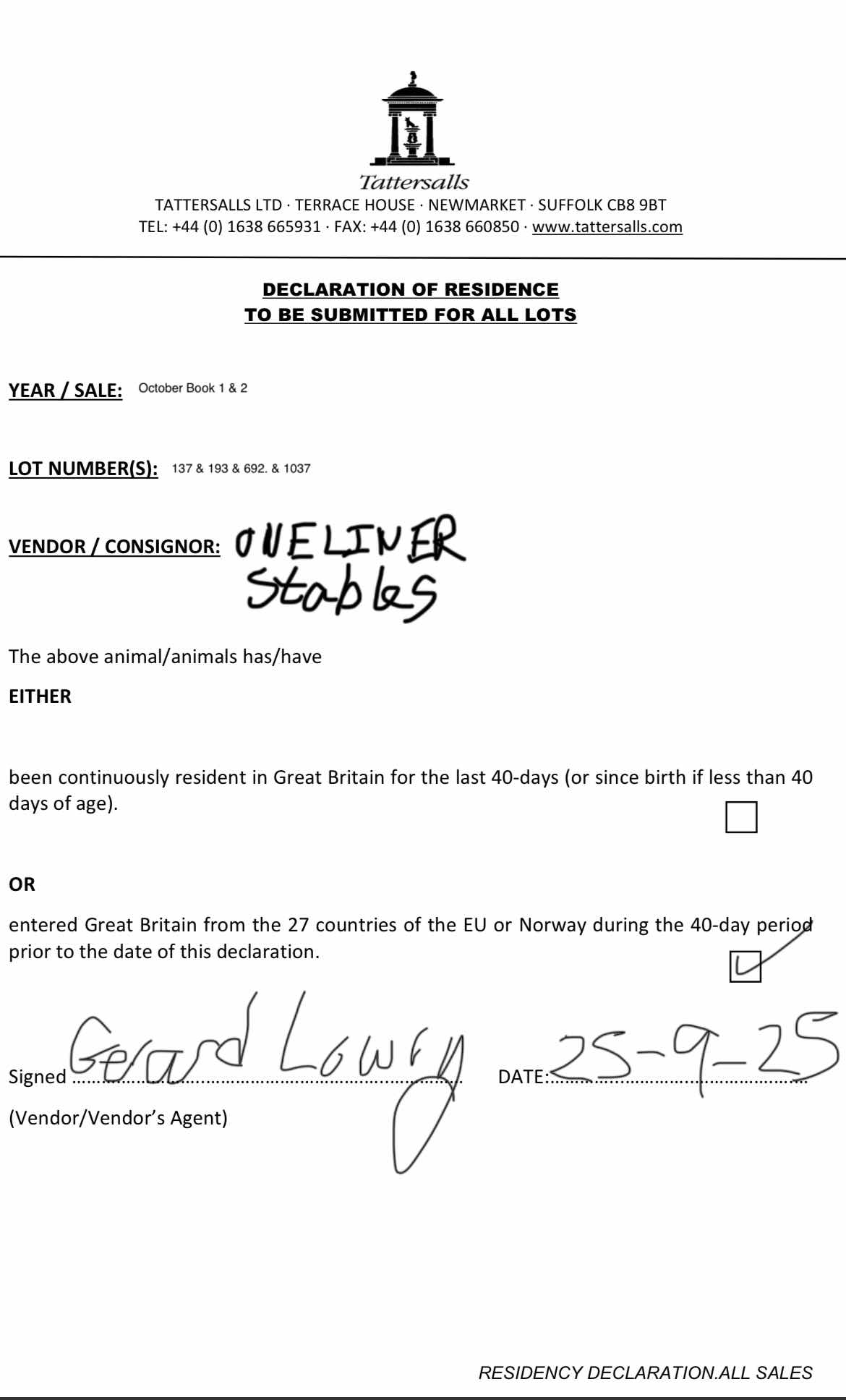 Consignor: Oneliner Stables, Ireland