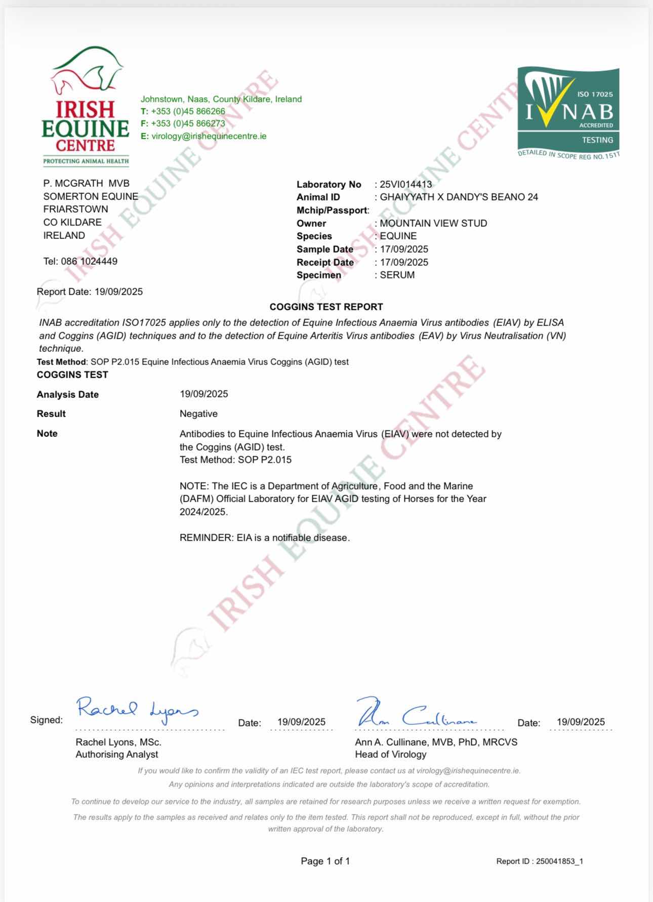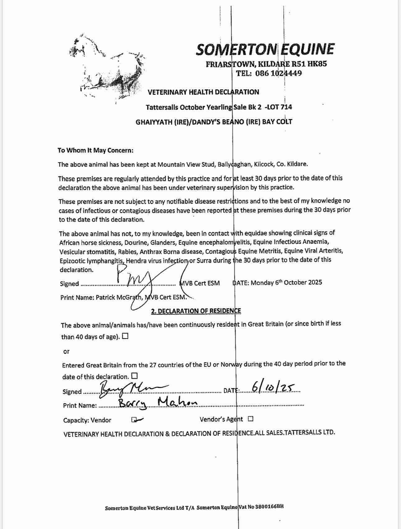 Consignor: Mountain View Stud, Ireland