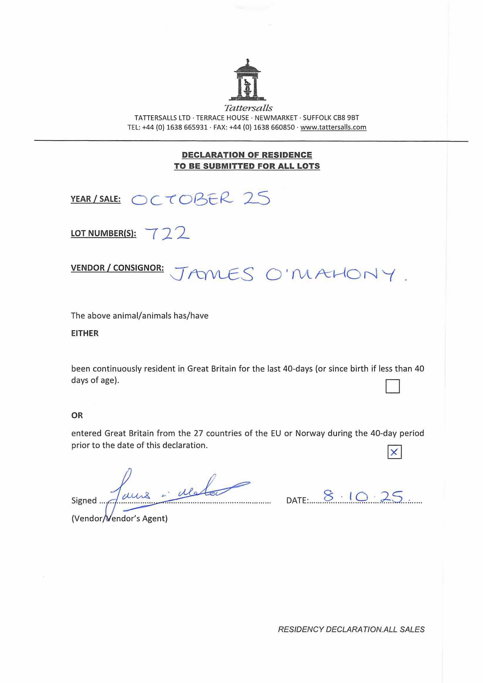 Consignor: James O'Mahony