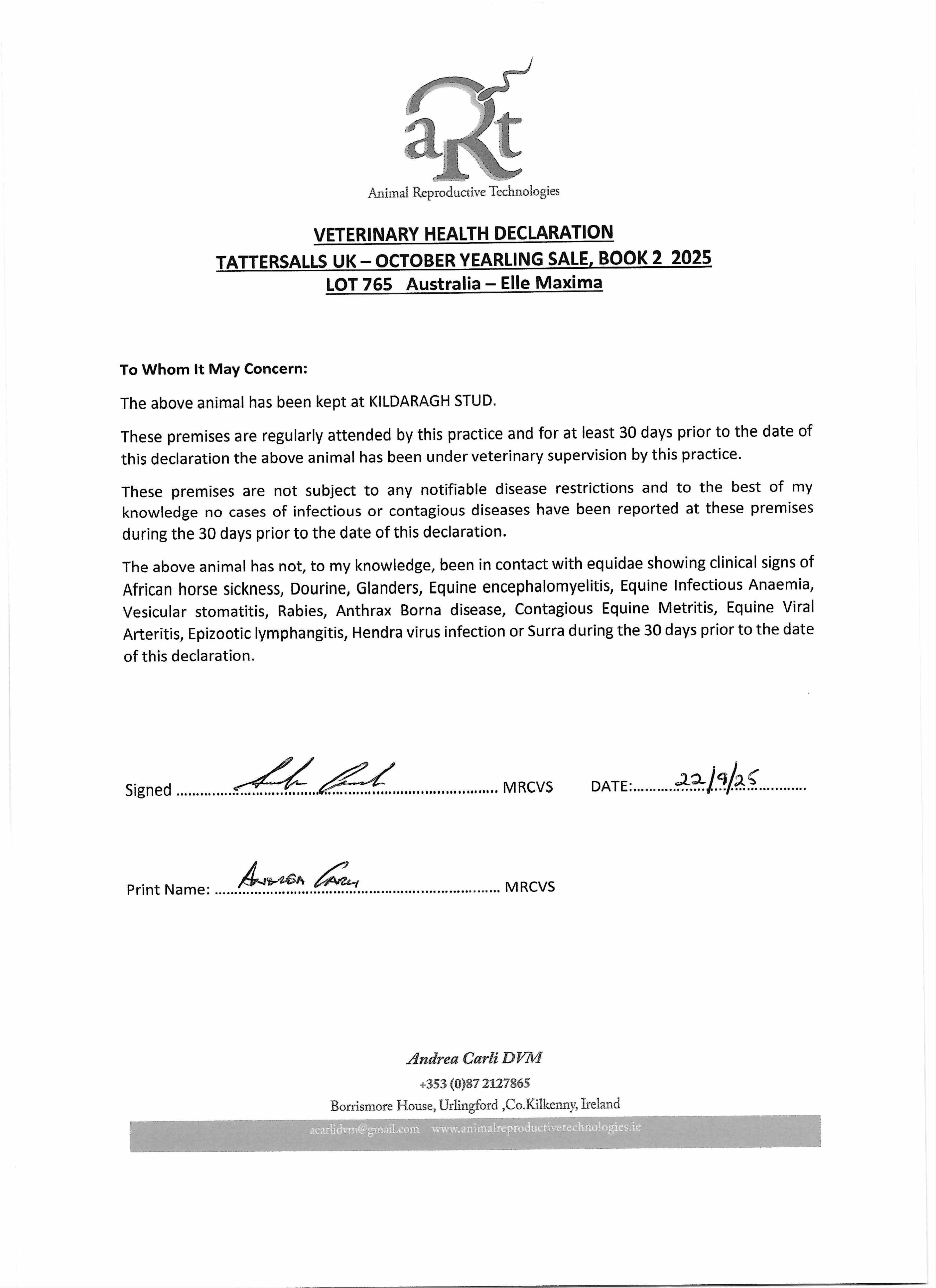 Consignor: Kildaragh Stud, Ireland