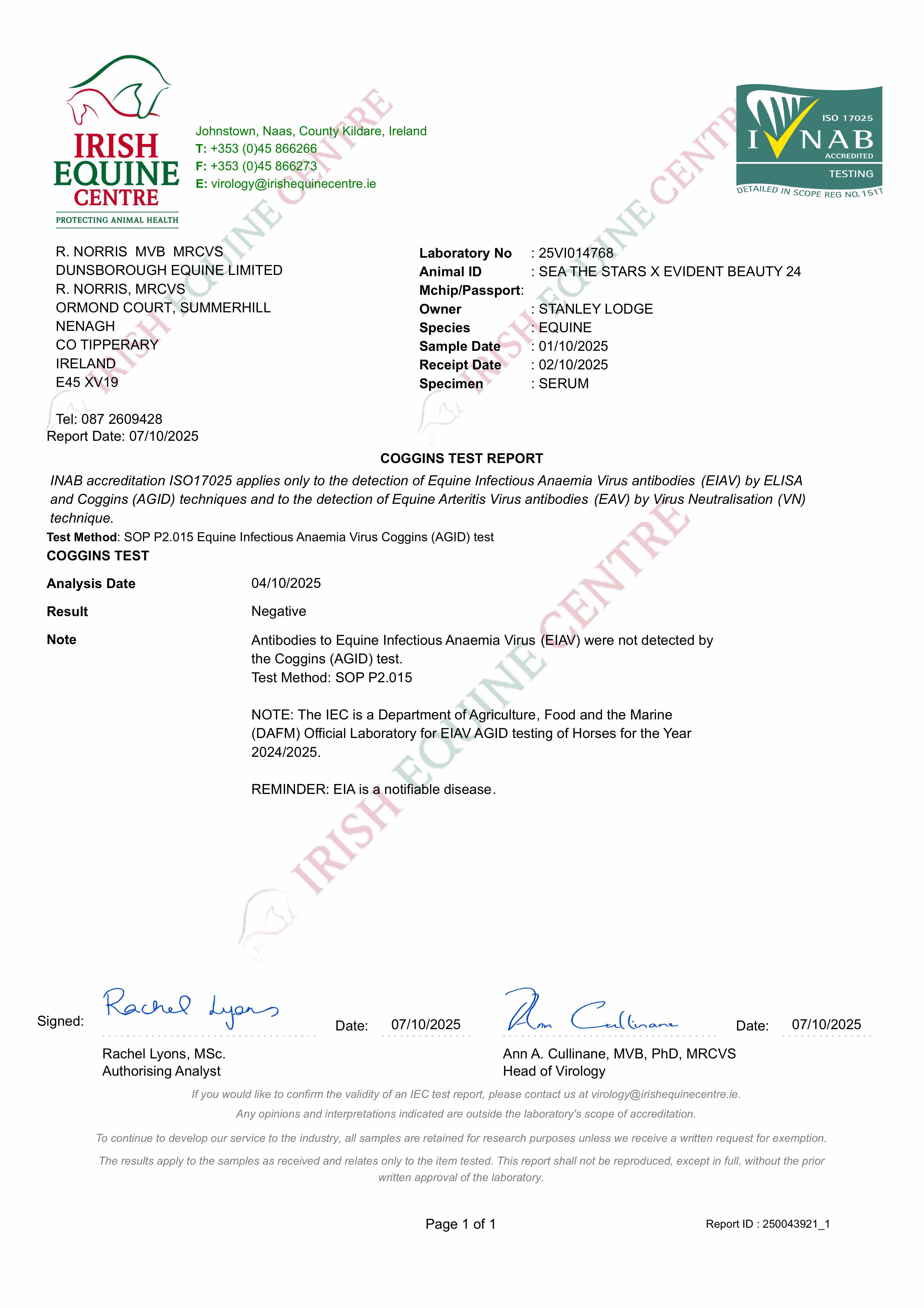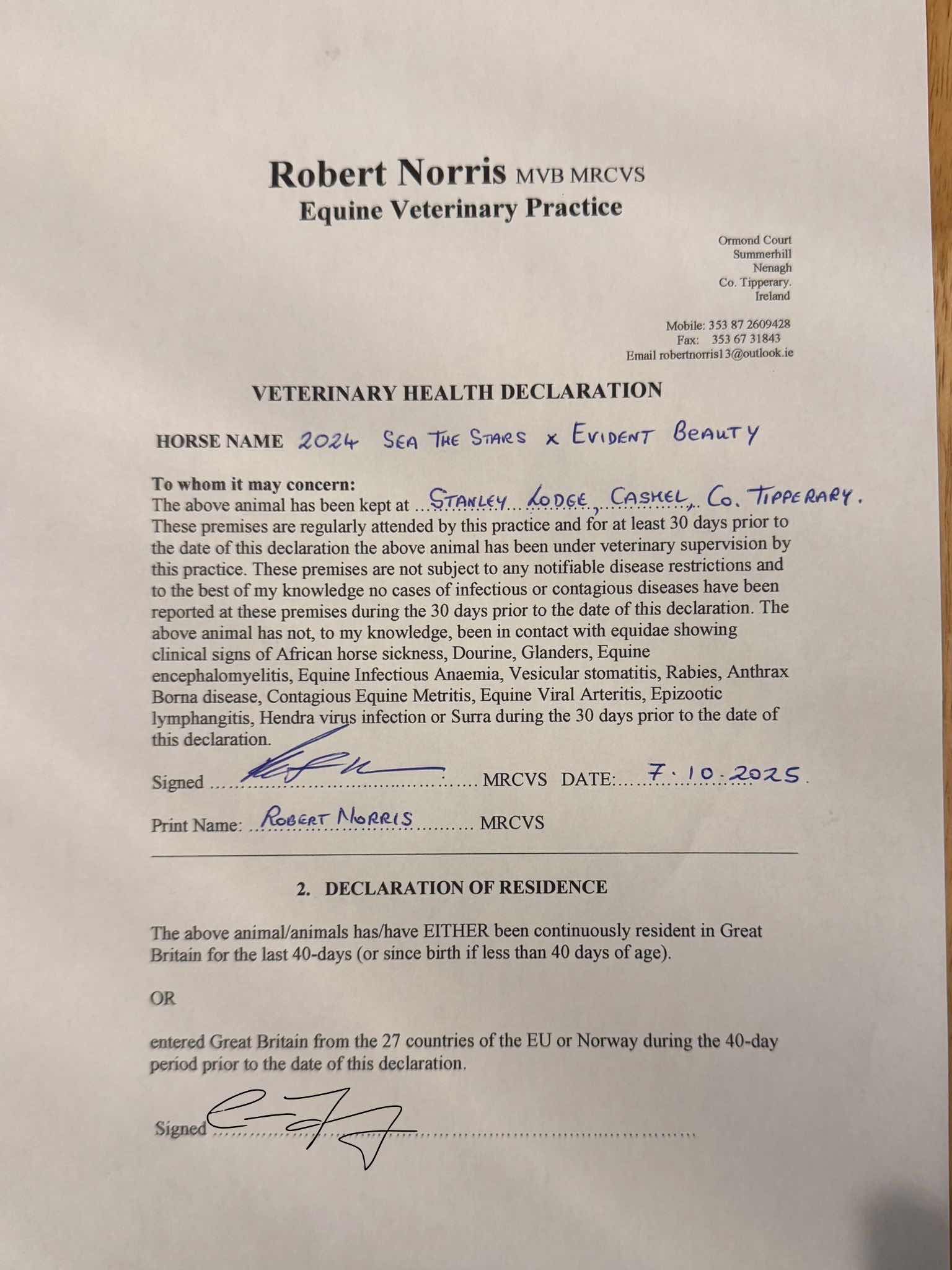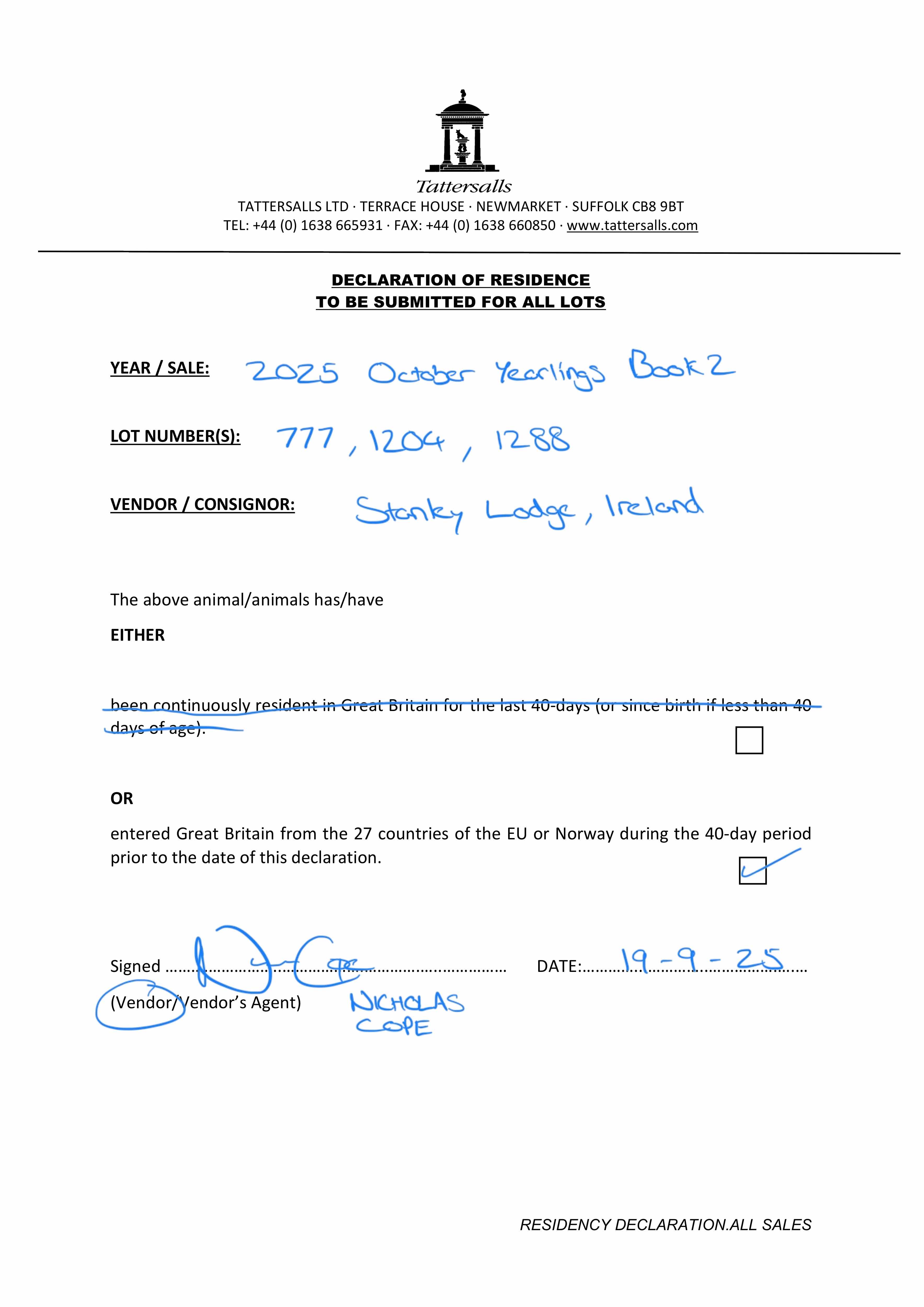 Consignor: Stanley Lodge, Ireland
