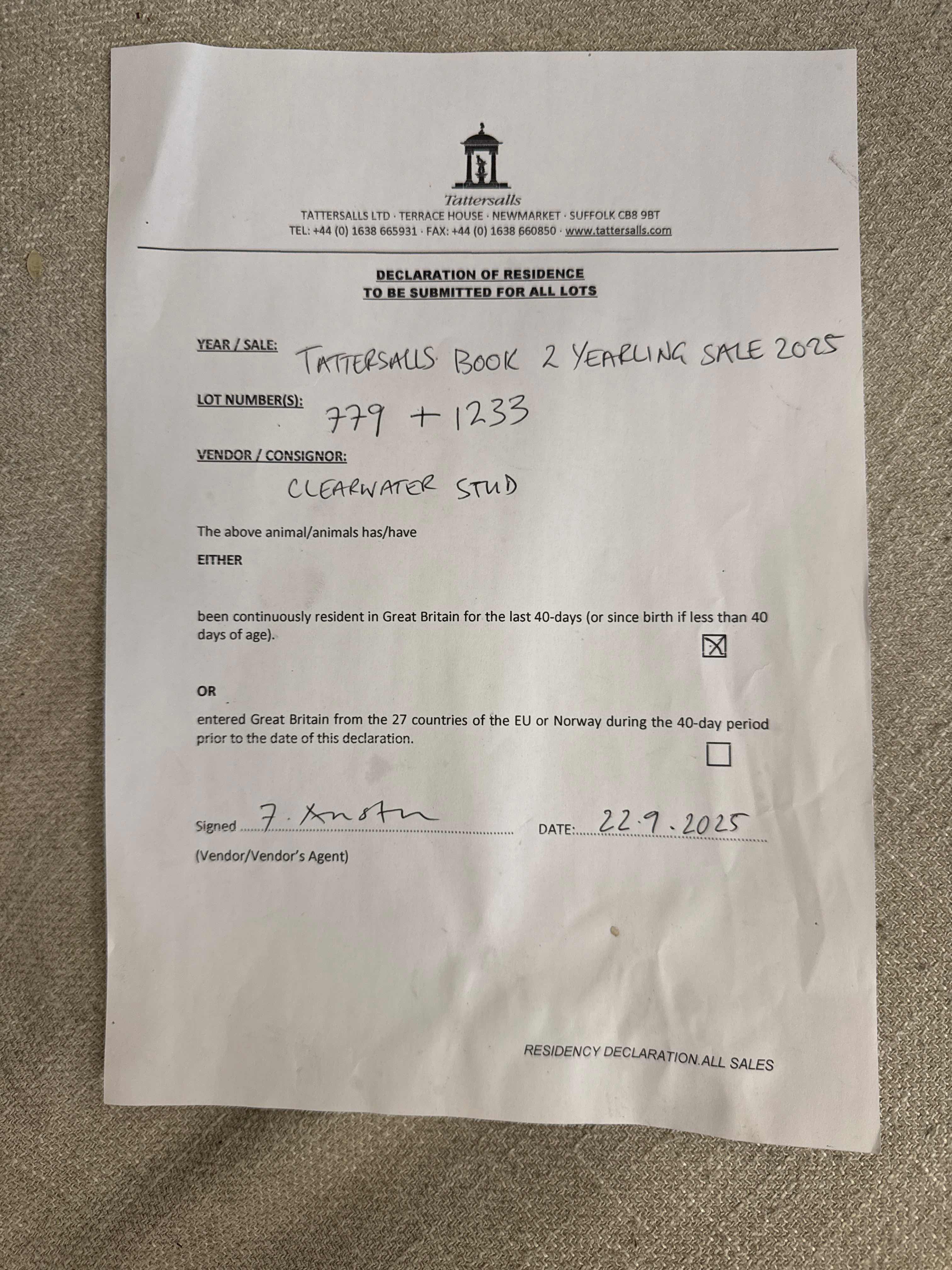 Consignor: Clearwater Stud