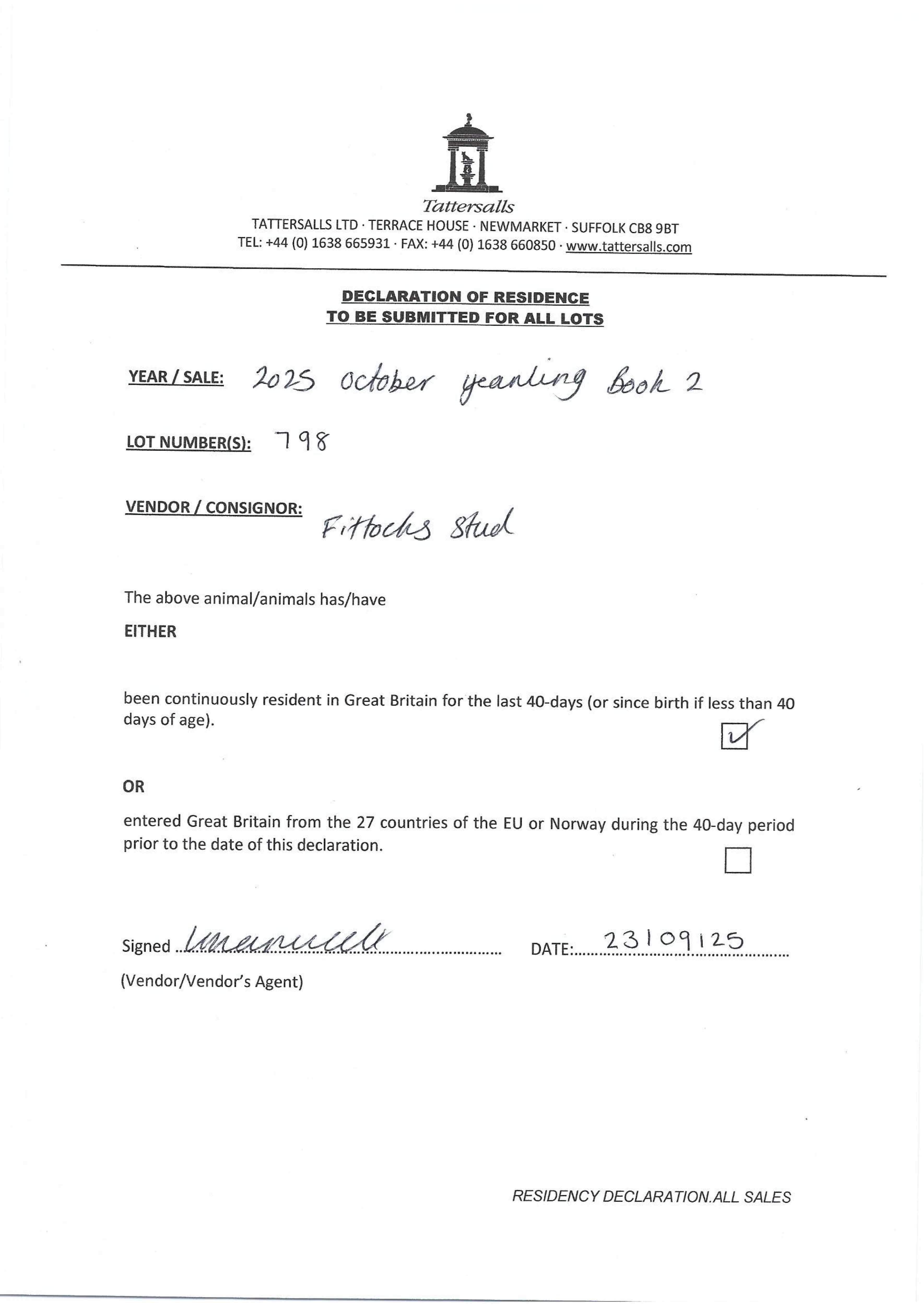 Consignor: Fittocks Stud