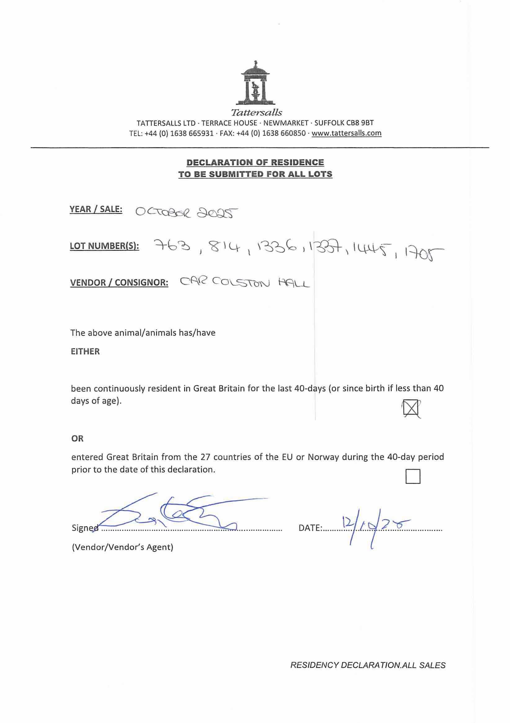 Consignor: Car Colston Hall Stud