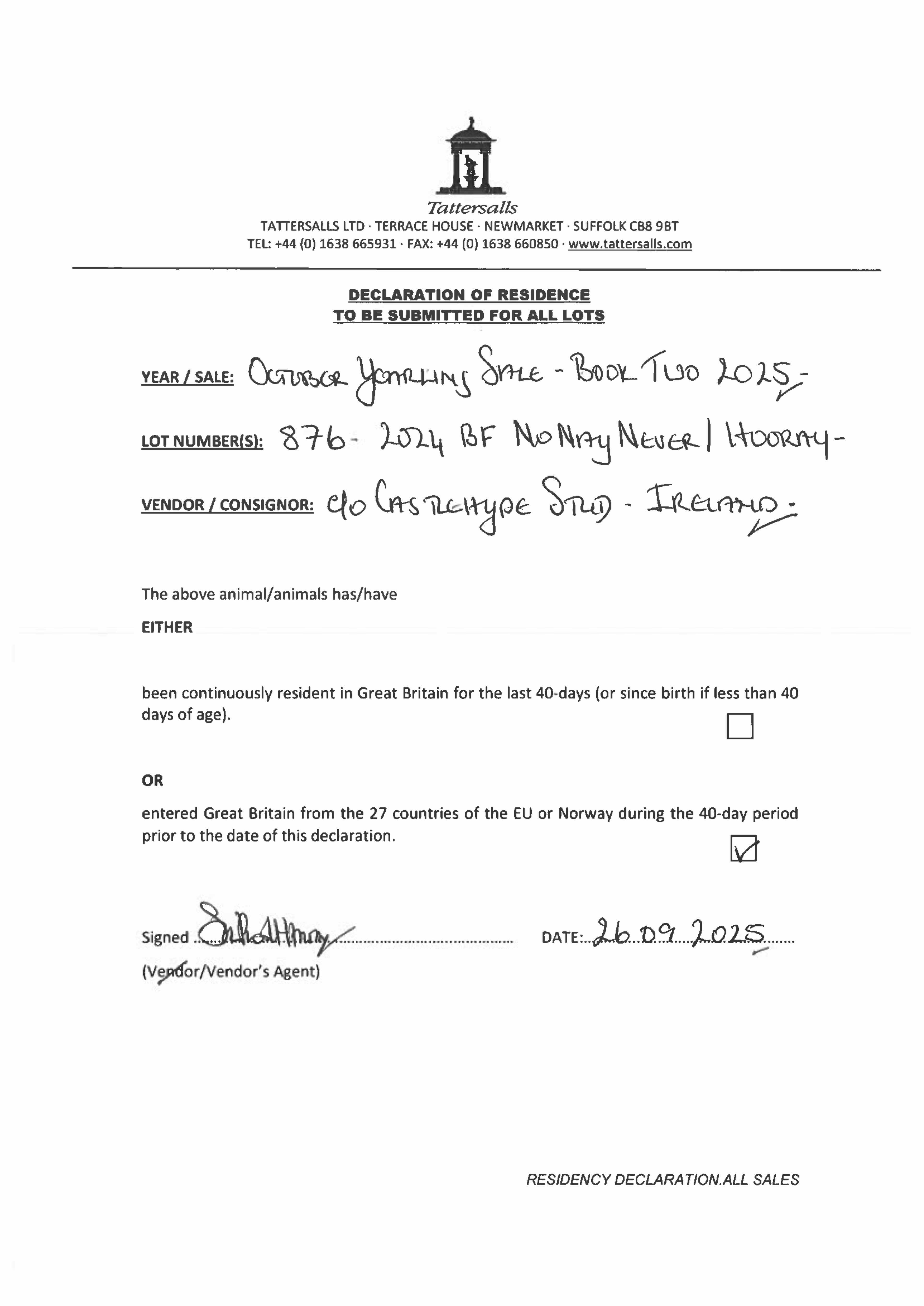 Consignor: Manister House Stud, Ireland