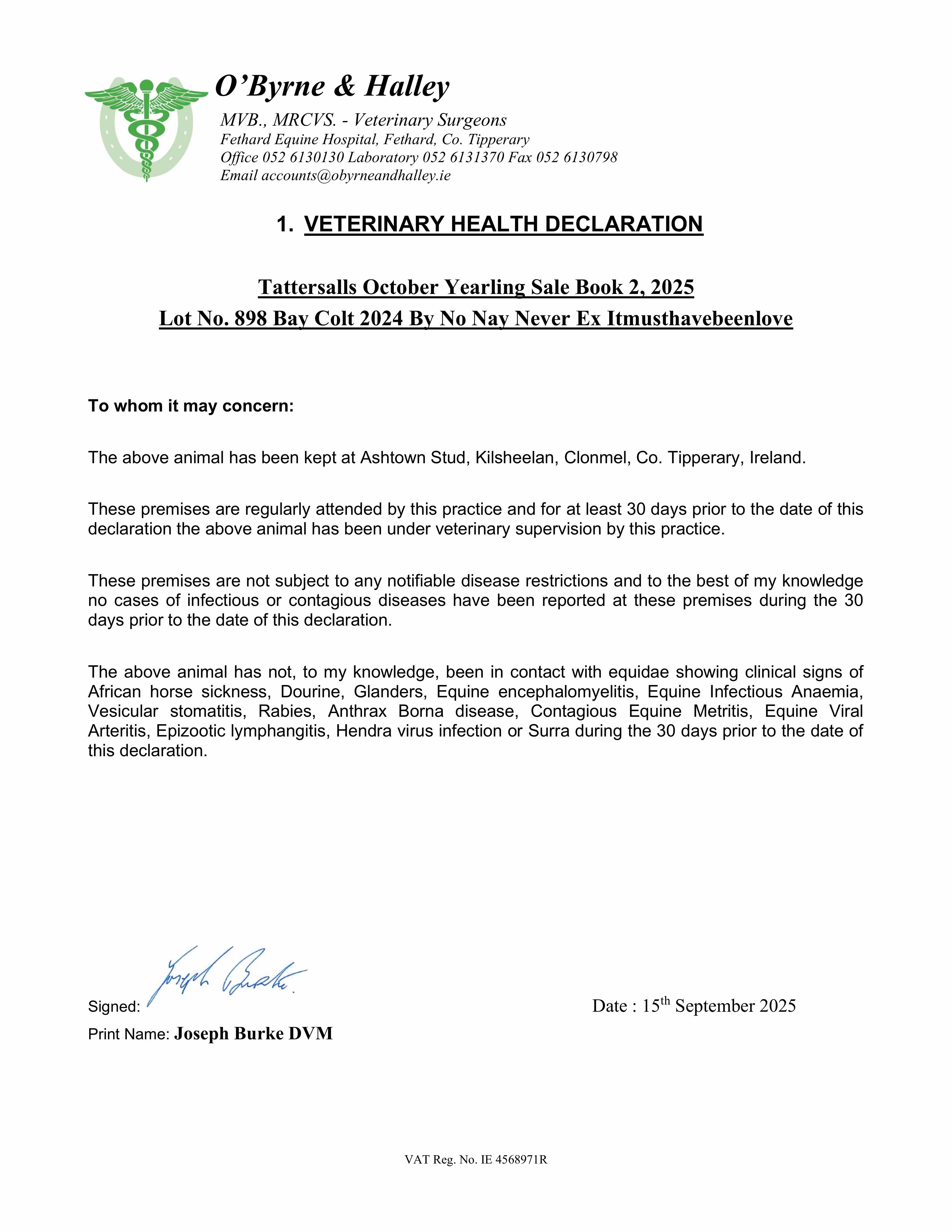 Half brother: VINCENT ROCKS (IRE) (2022 g. by Ten Sovereigns (IRE)), won 2 races at 3 years, 2025, all his starts.