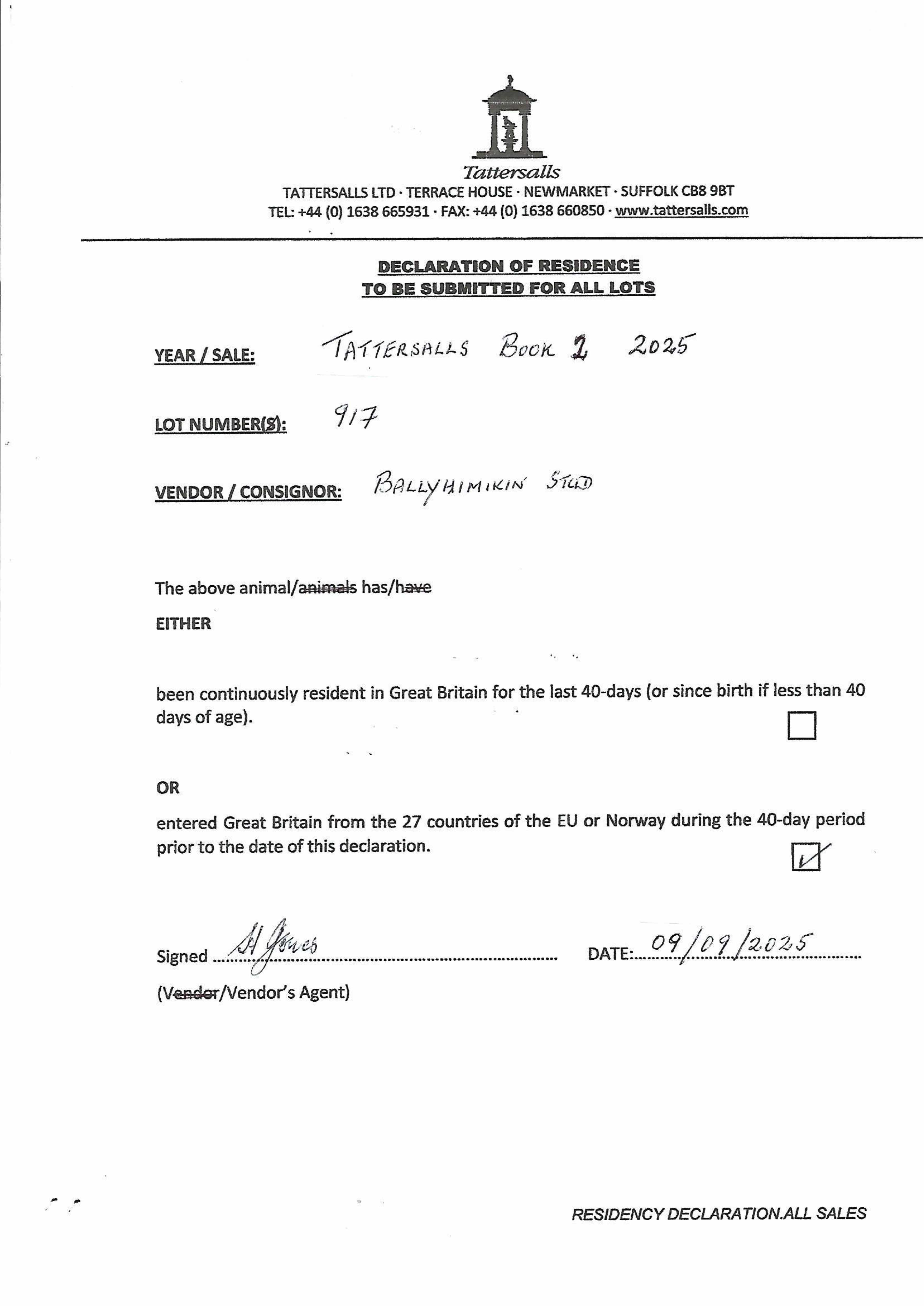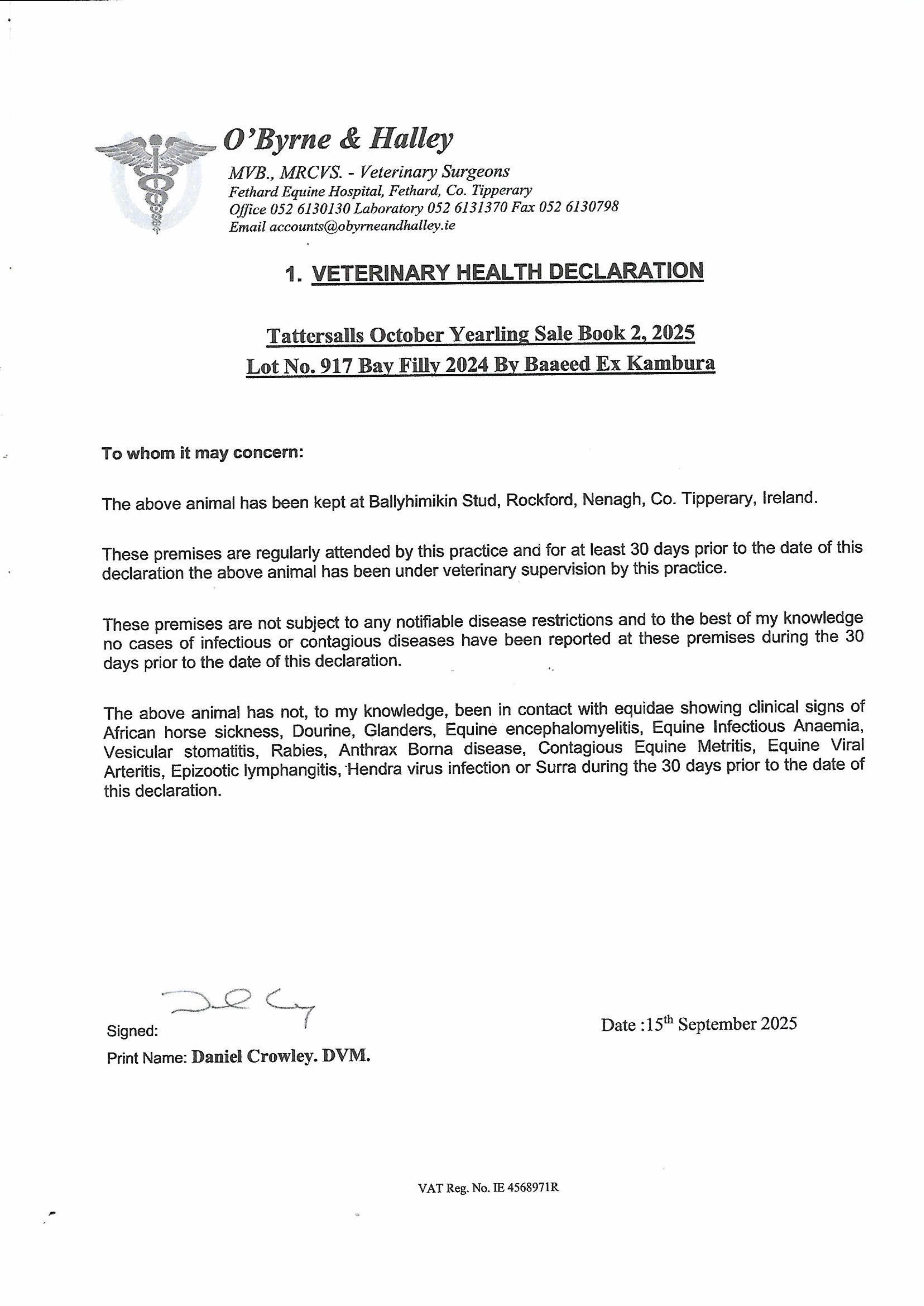 Consignor: Ballyhimikin Stud, Ireland