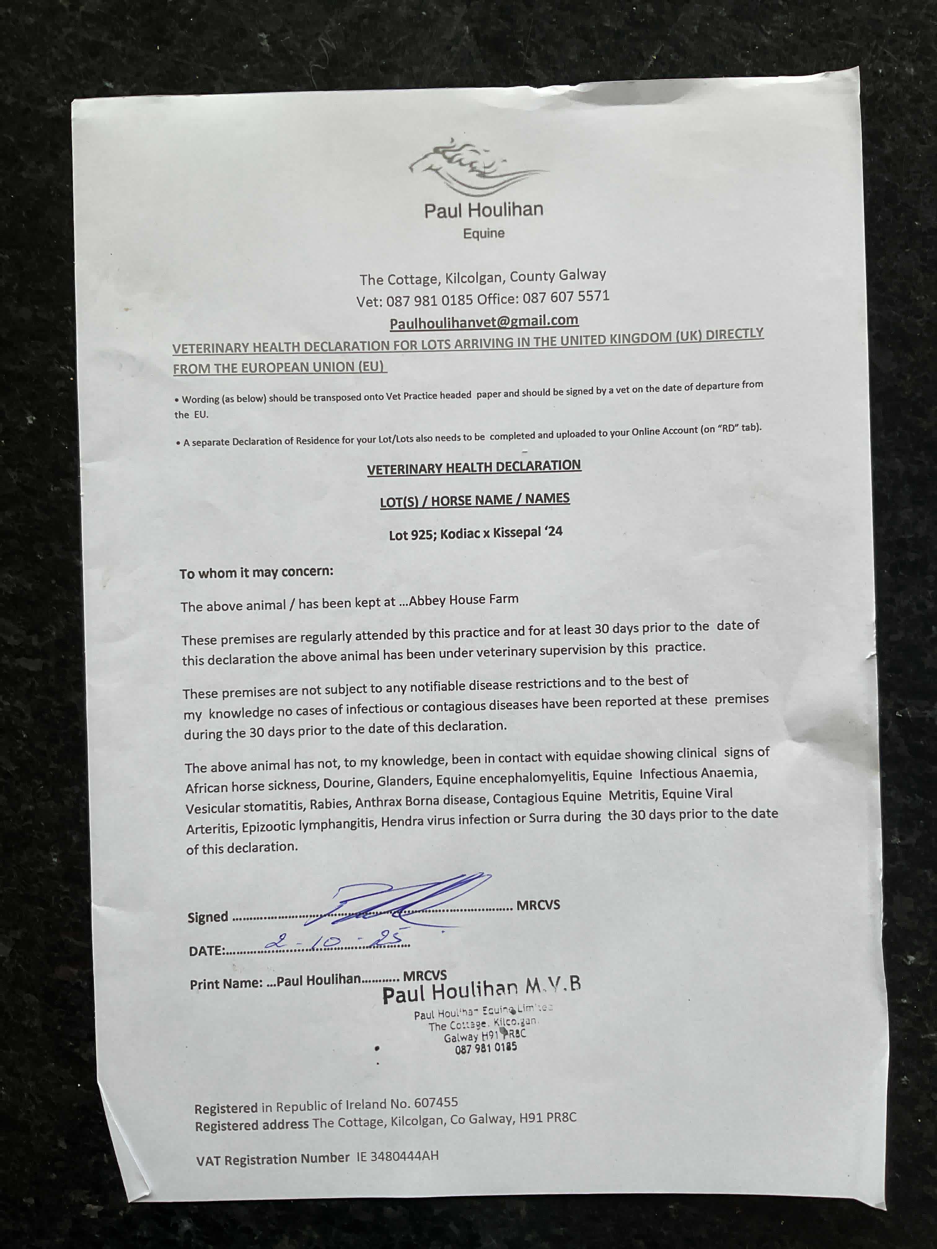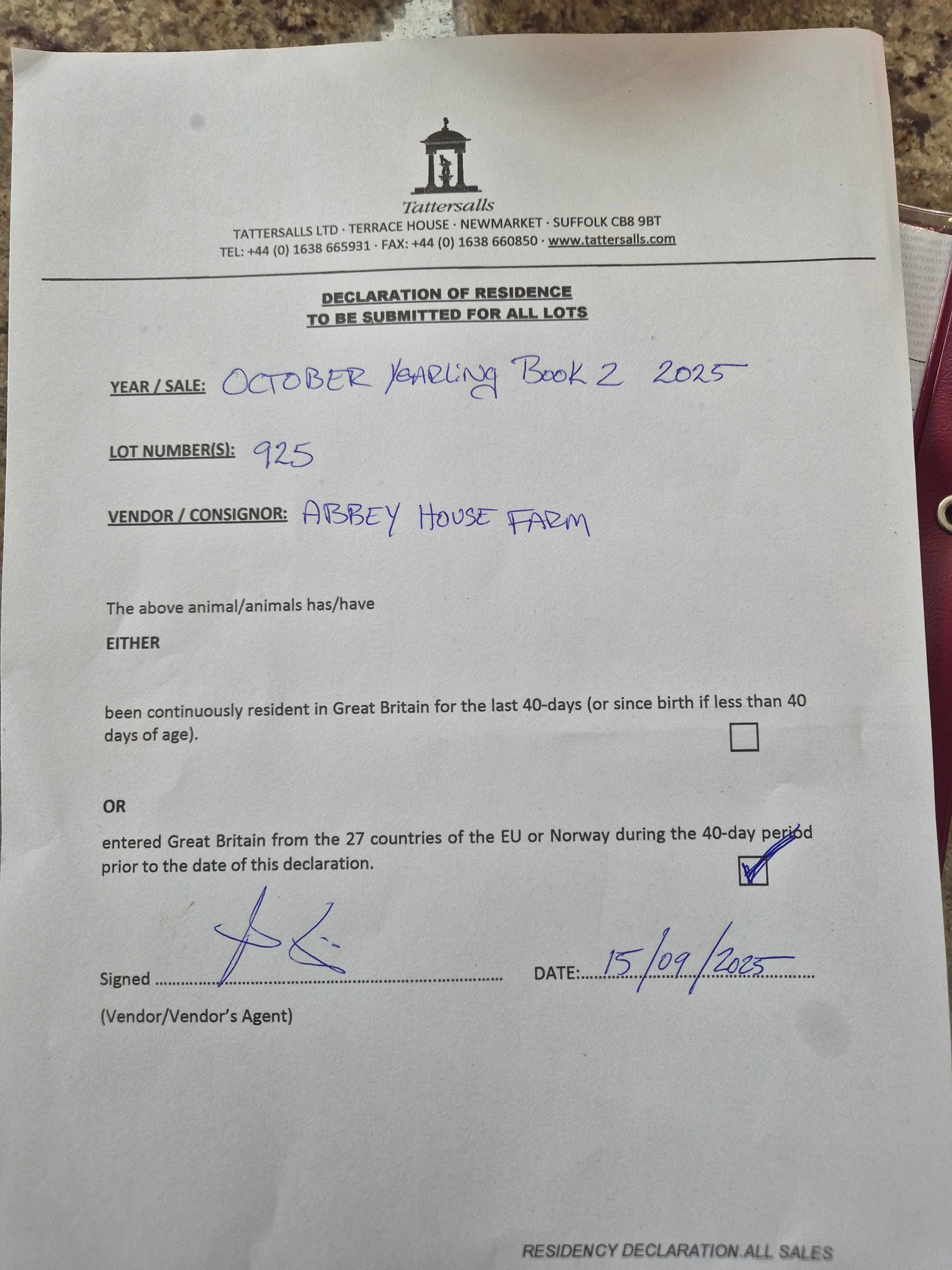 Consignor: Abbey House Farm, Ireland