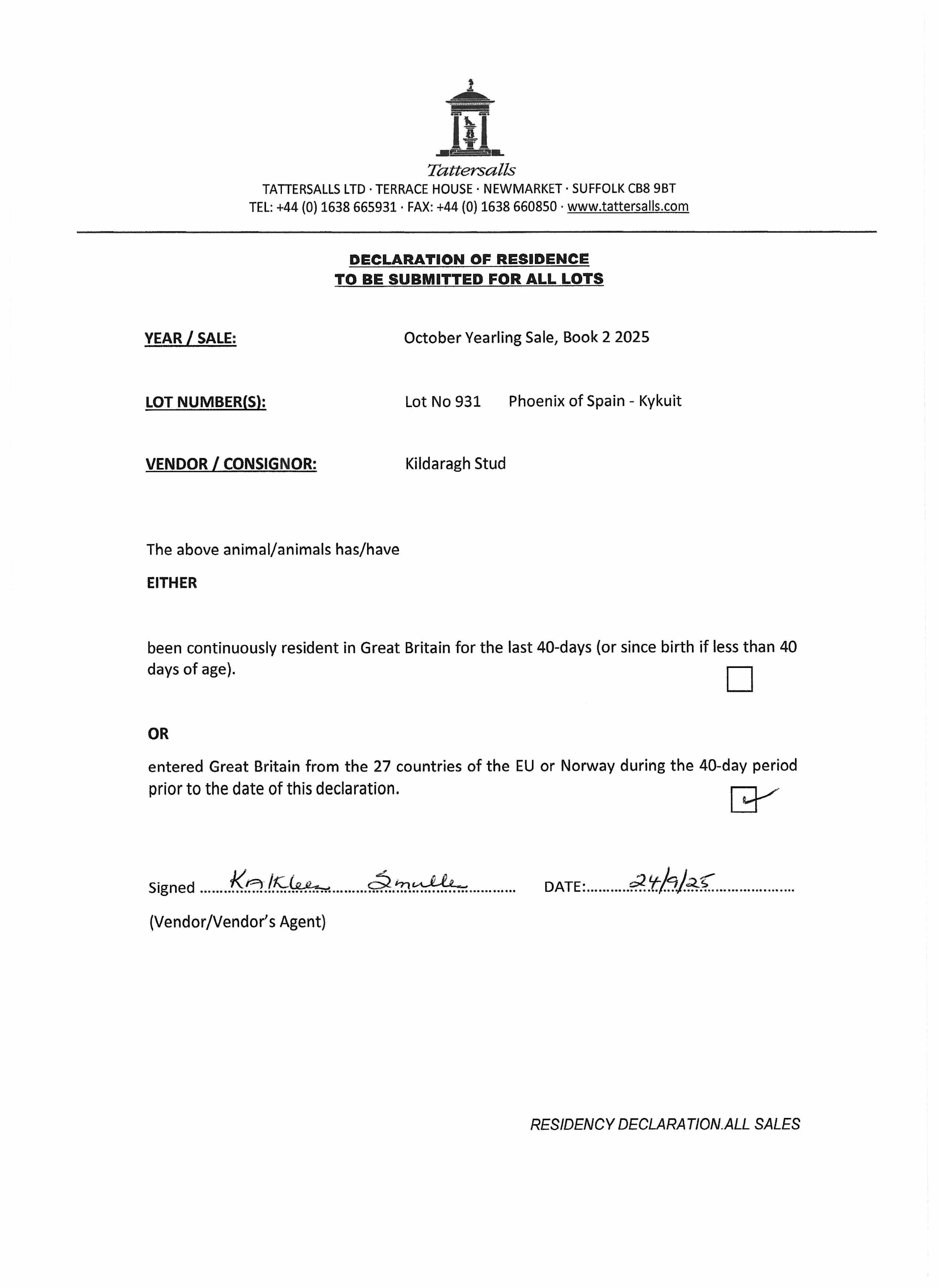 October Yearling Sale, Book 2 2023 lot 1216 F. 2022, Kildaragh Stud, Ireland (Agent)=>Steve Barry / Mrs Jennifer Simpson Racing 40,000 gns