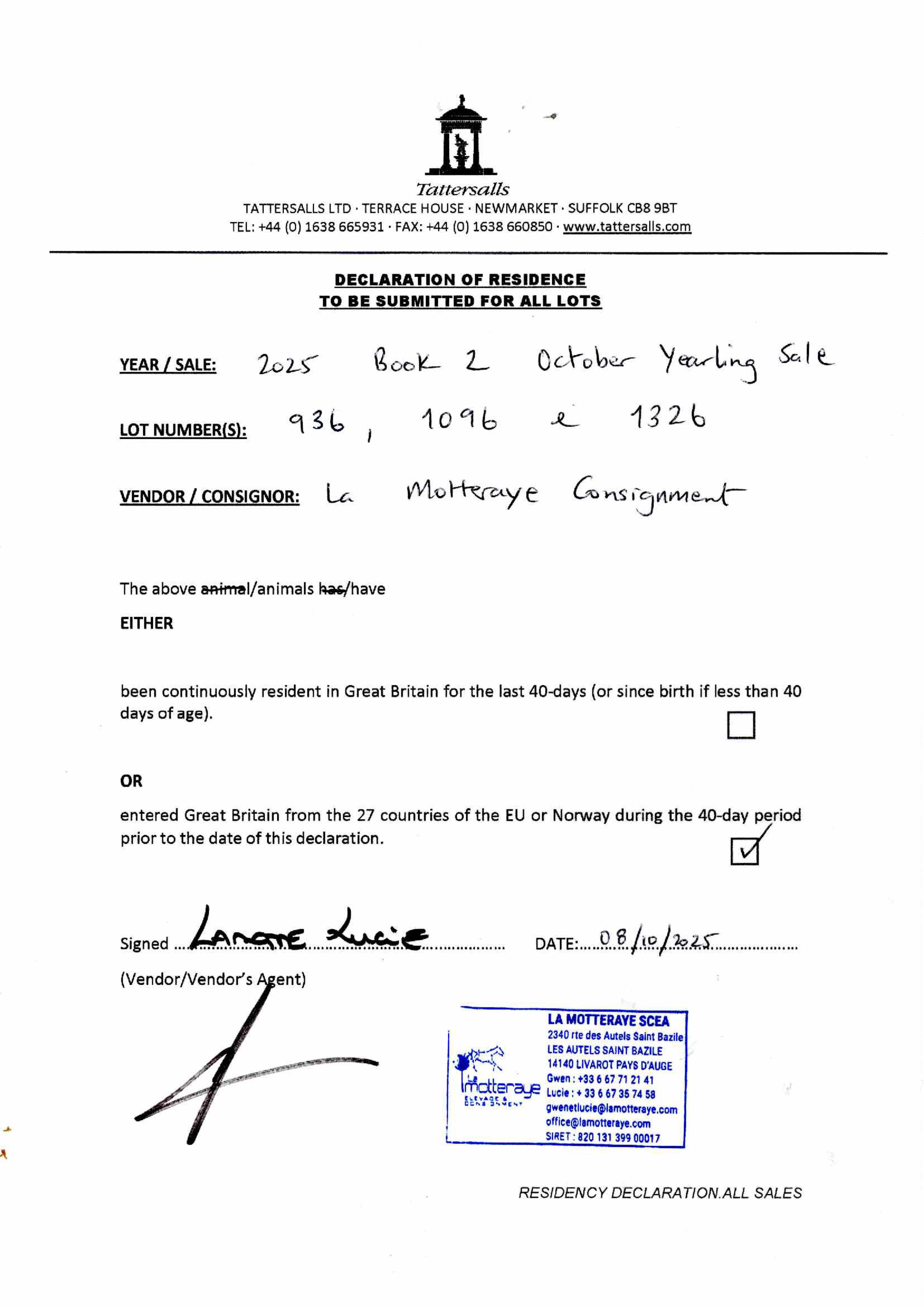 Consignor: La Motteraye Consignment