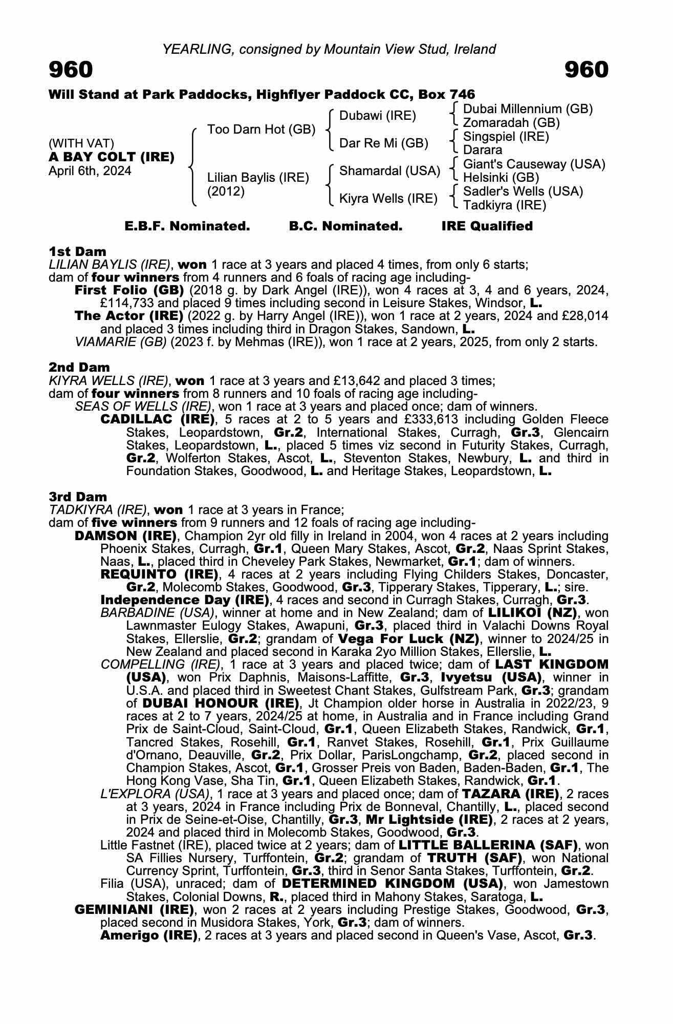 Consignor: Mountain View Stud, Ireland
