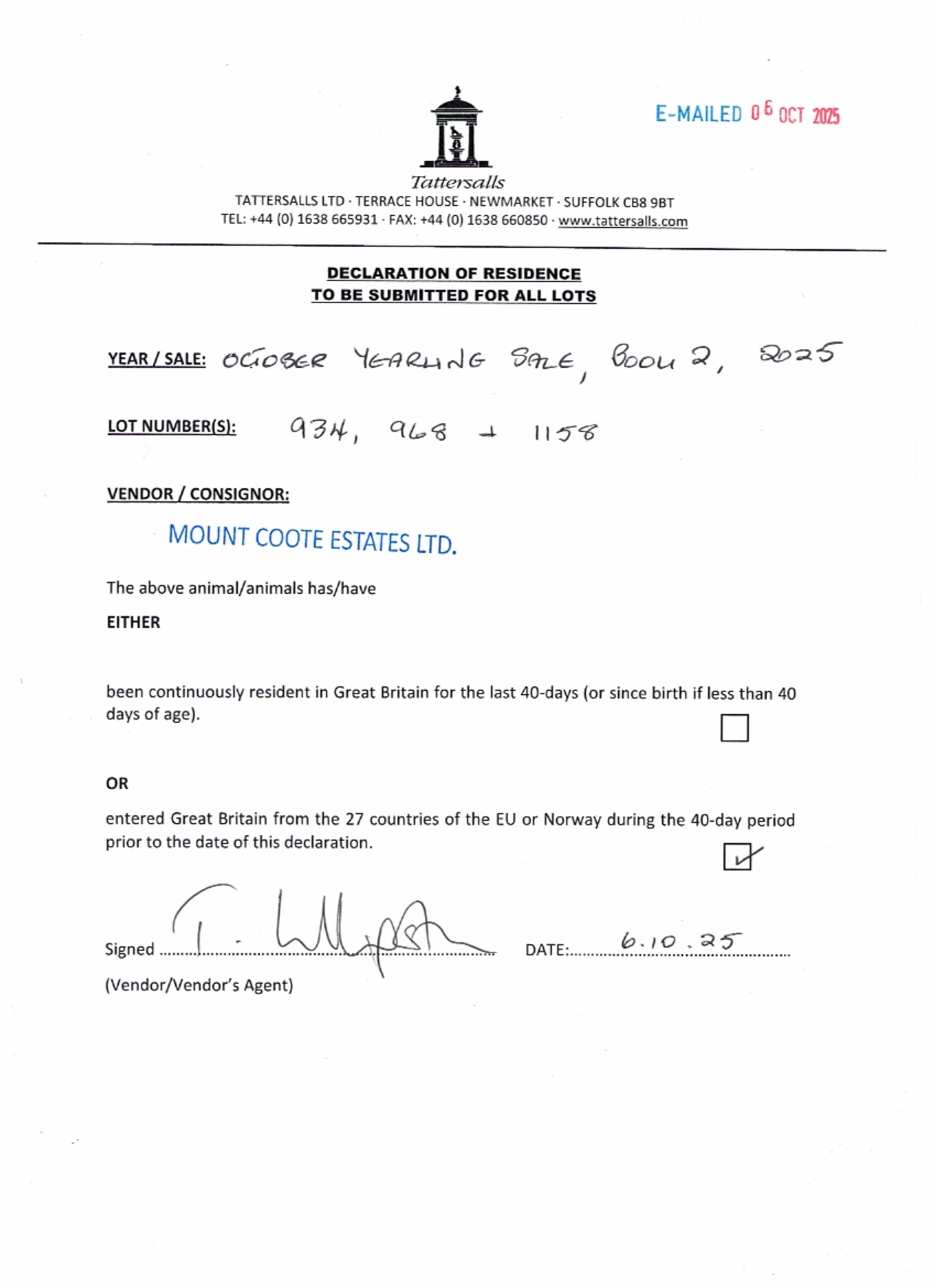 Mount Coote Stud, Ireland