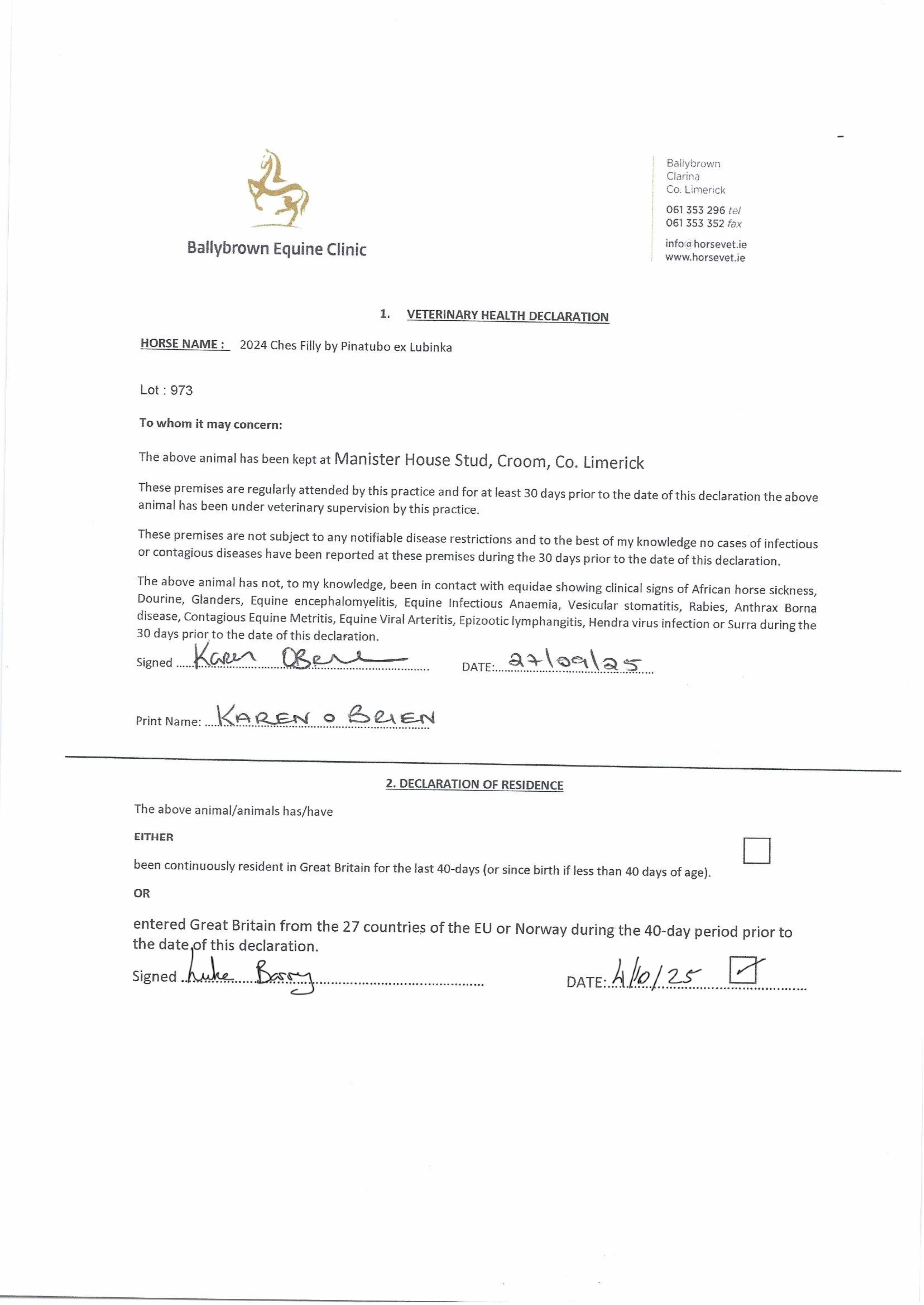 Consignor: Manister House Stud, Ireland