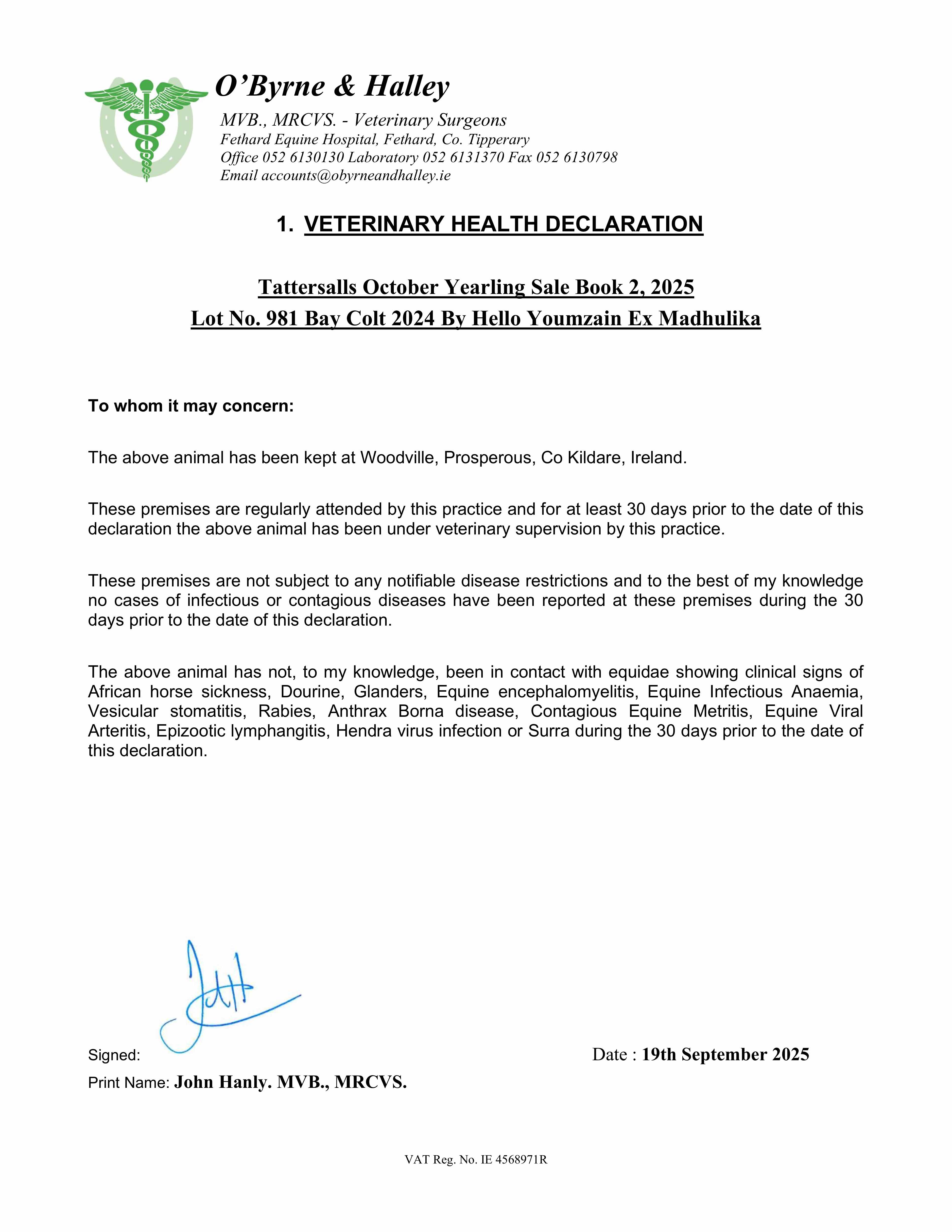 Consignor: Corduff Stud, Ireland