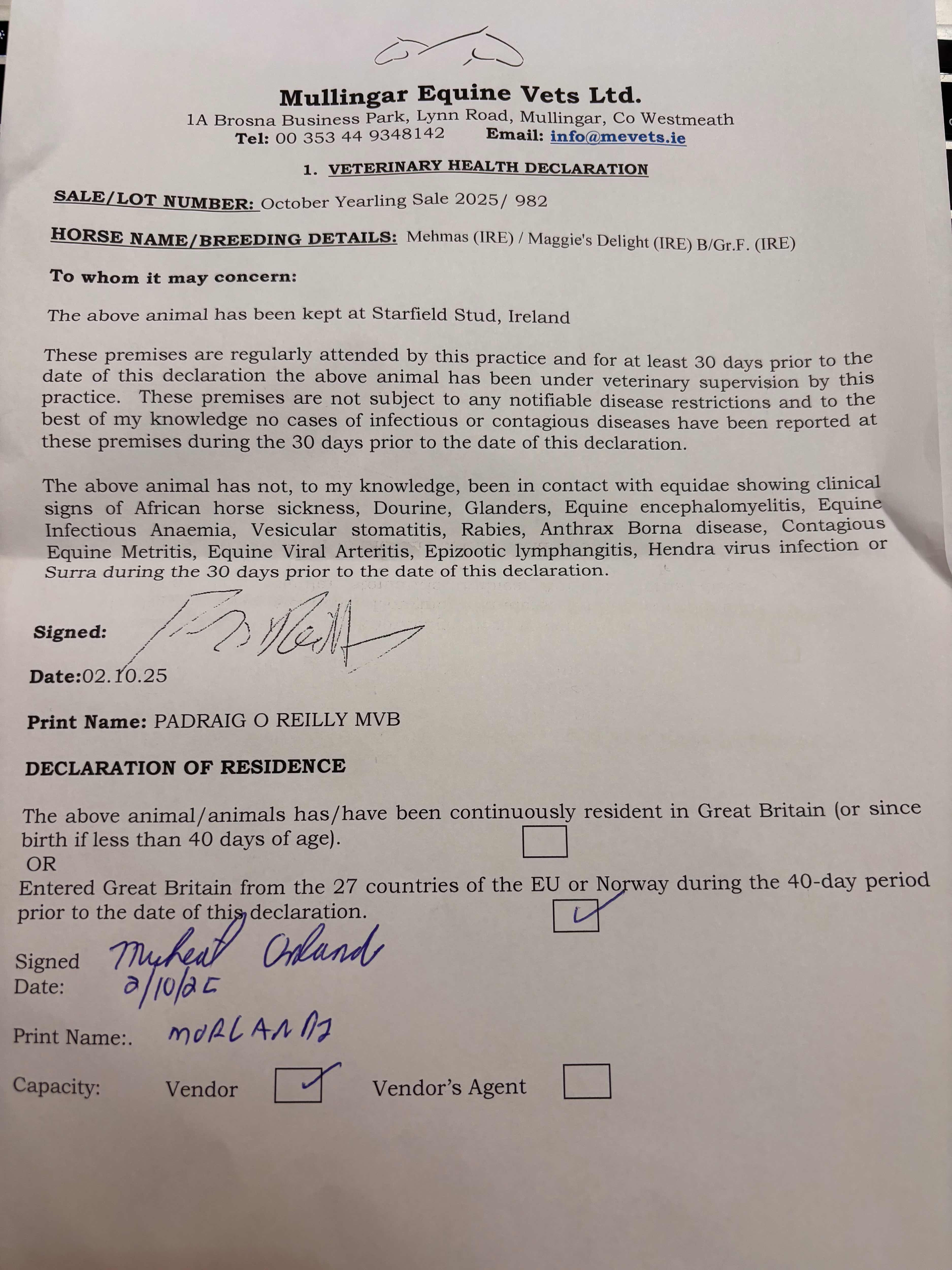 Consignor: Starfield Stud, Ireland