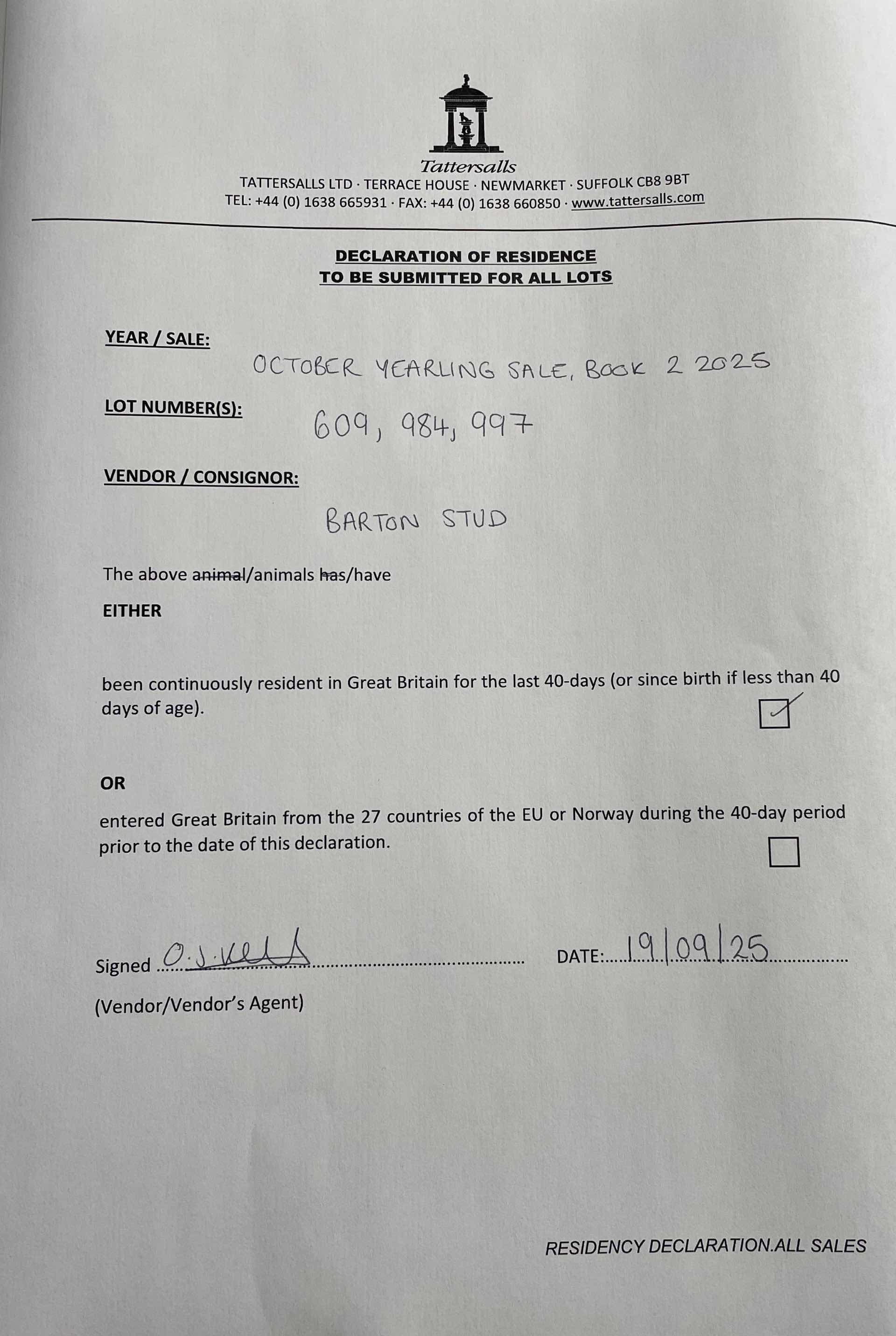 October Yearling Sale, Book 2 2024 lot 926 F. by Starspangledbanner (AUS) 2023, Barton Stud=>Nick Bell 50,000 gns