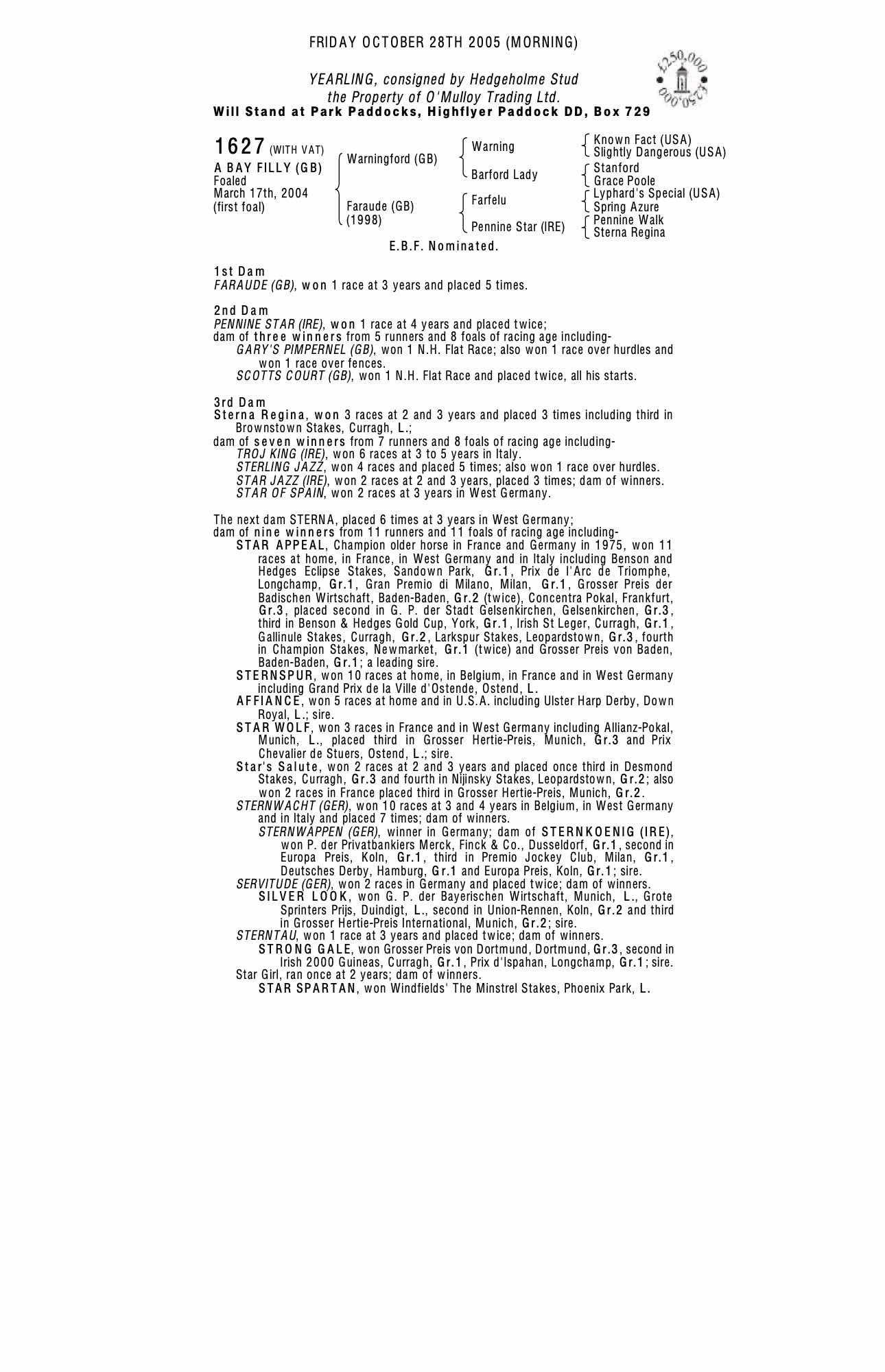 Consignor: Hedgeholme Stud