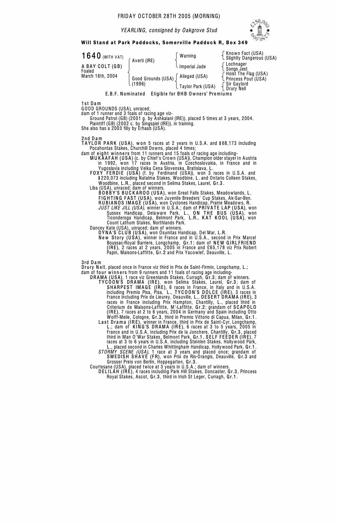 October Yearling Sale, Book 2 2004 lot 1923 F. by Erhaab (USA) 2003, Oakgrove Stud=>Vendor 8,000 gns