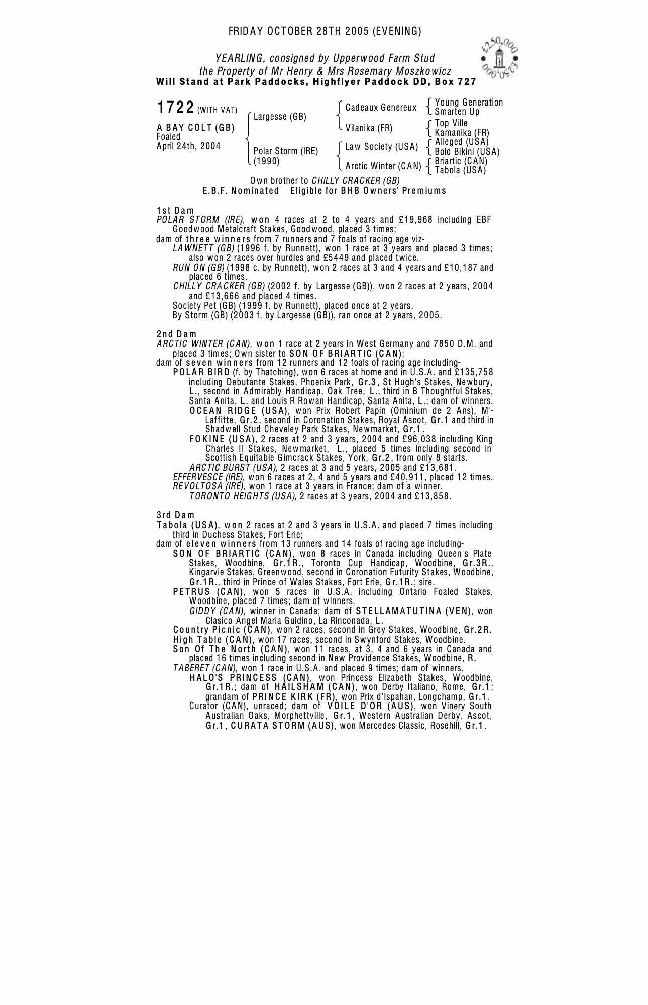October Yearling Sale, Book 2 2004 lot 2089 F. 2003, Upperwood Farm Stud=>Vendor 5,000 gns