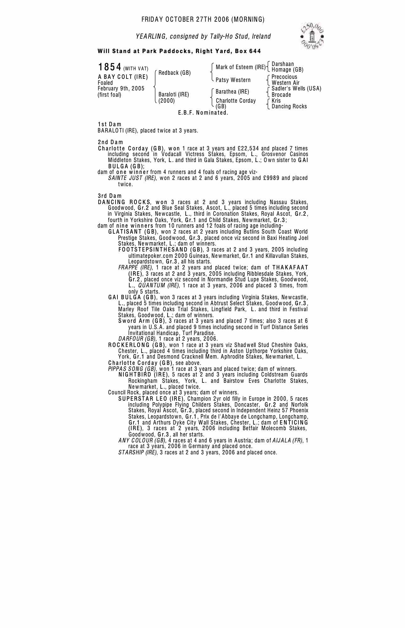 Consignor: Tally-Ho Stud, Ireland