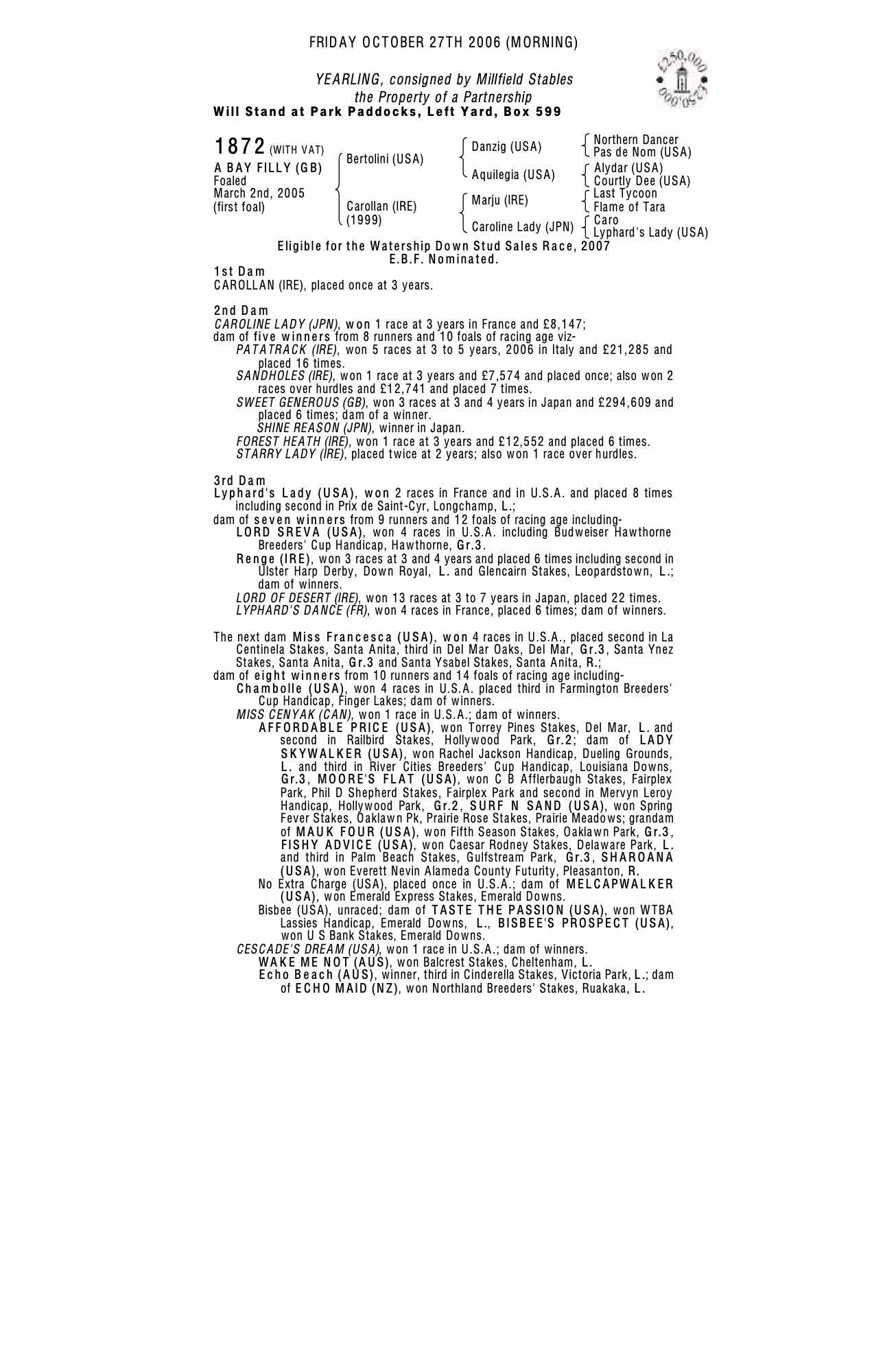 December Foal Sale 2007 lot 382 F. by Tobougg (IRE) 2007, Silfield Bloodstock=>Vendor 1,500 gns