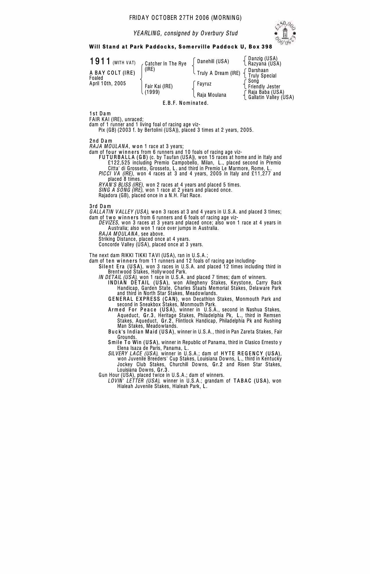 October Yearling Sale, Book 2 2004 lot 1487 F. by Bertolini (USA) 2003, Overbury Stud=>Vendor 3,000 gns