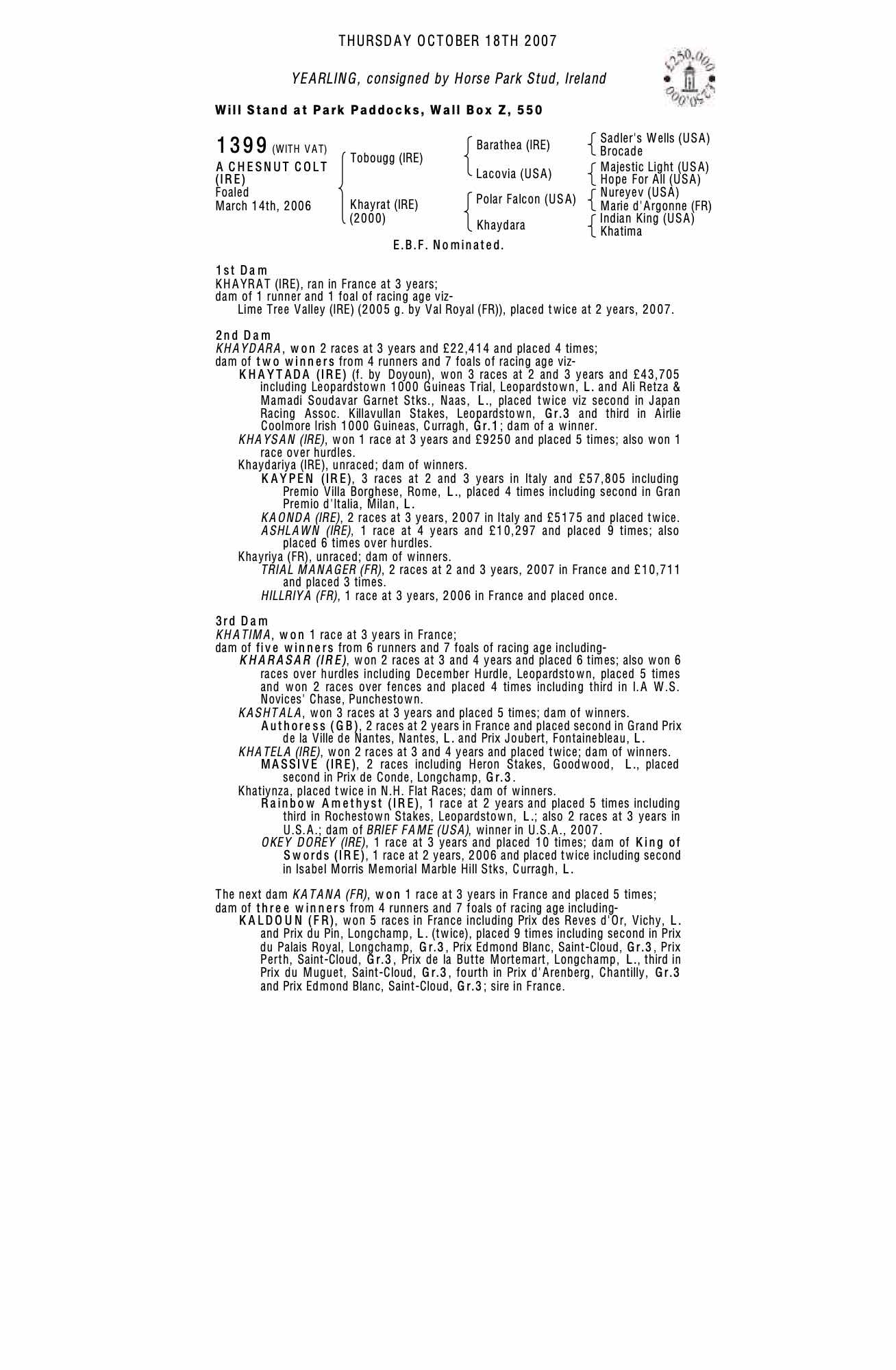 September Yearling Sale 2006 lot 419 C. by Val Royal (FR) 2005, Kilbride House Stud=>Frank Barry €50,000