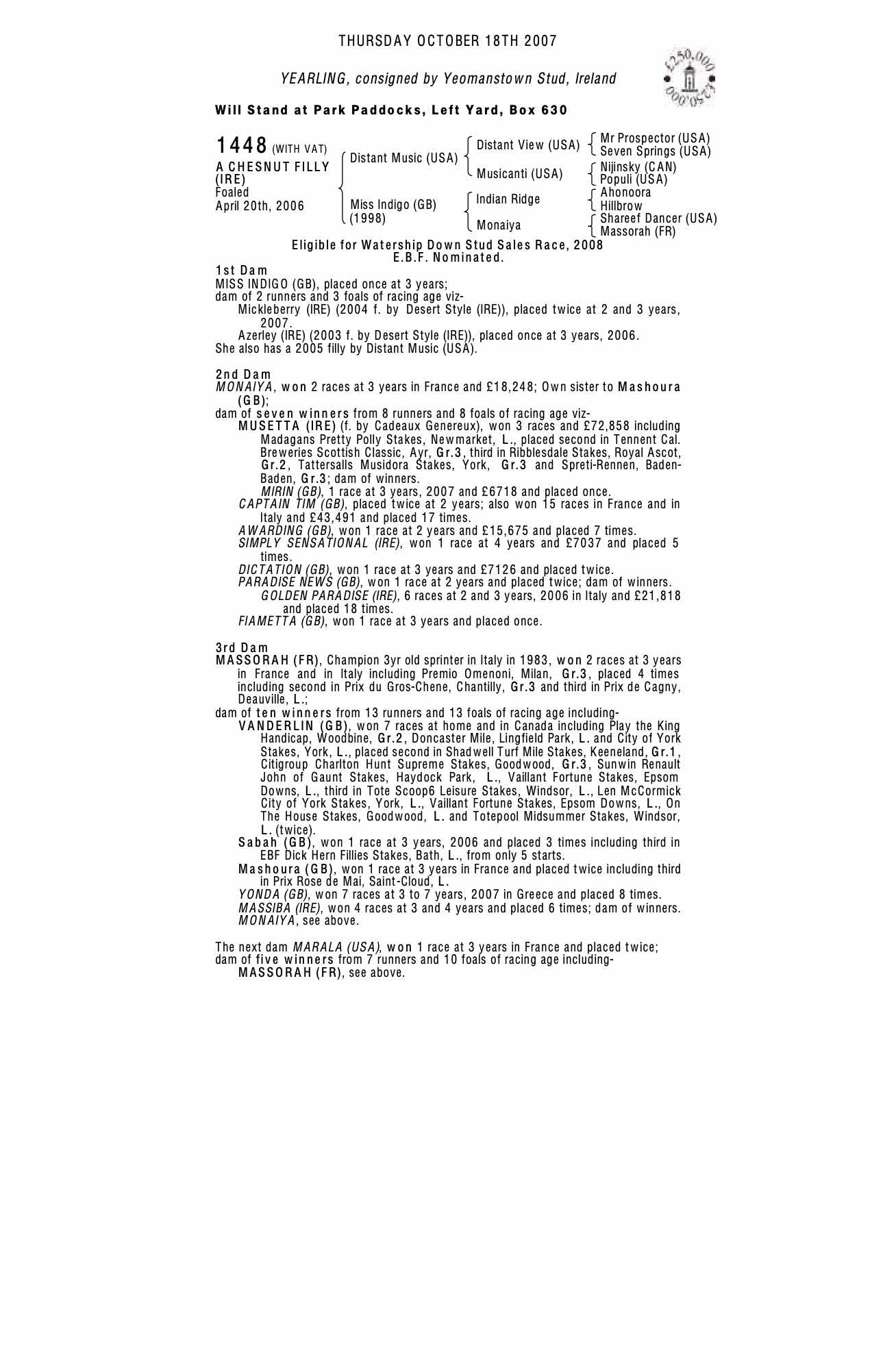 October Yearling Sale, Book 3 2006 lot 1972 F. 2005, Yeomanstown Stud, Ireland=>D Arbuthnot 4,500 gns